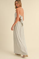 STRIPED LONG AND LEAN BACK TIE STRAPLESS MAXI DRESS