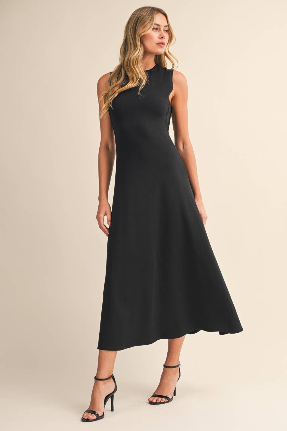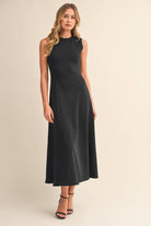 The high neckline keeps the look clean and polished from the front, while the delicate keyhole back detail adds just the right touch of understated charm. Crafted from a smooth, structured knit, this dress moves beautifully with you—making it perfect for bridal events, baby showers, church, office days, or dressed up for date night.
