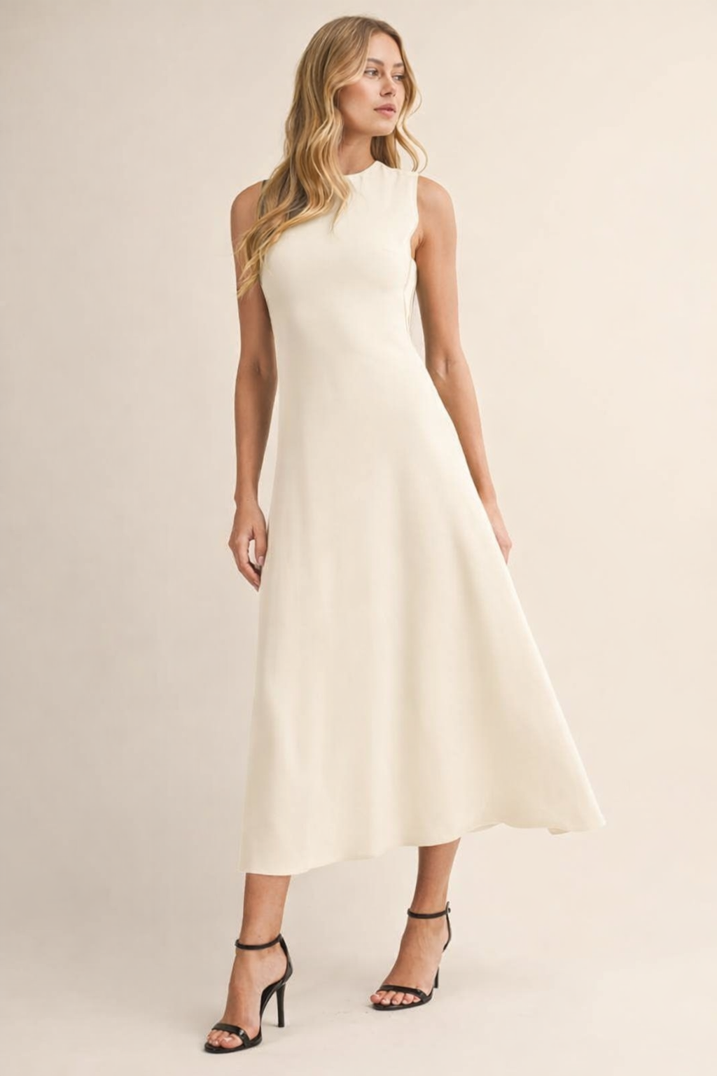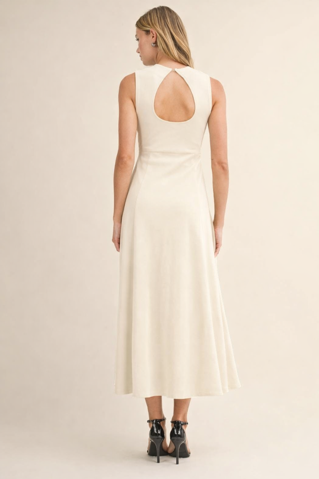 Effortless, elegant, and endlessly versatile—the Simply Stunning Keyhole Midi Dress in Ivory by Klesis is the kind of piece your closet (and your calendar) will thank you for. Designed with a sleek sleeveless bodice and a softly flared A-line silhouette, this midi dress creates a flattering, feminine shape without sacrificing comfort.