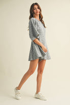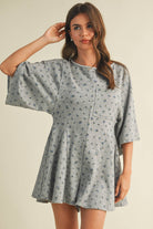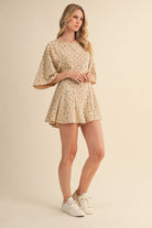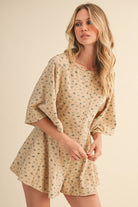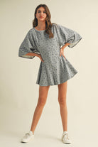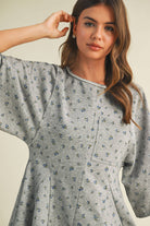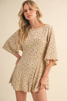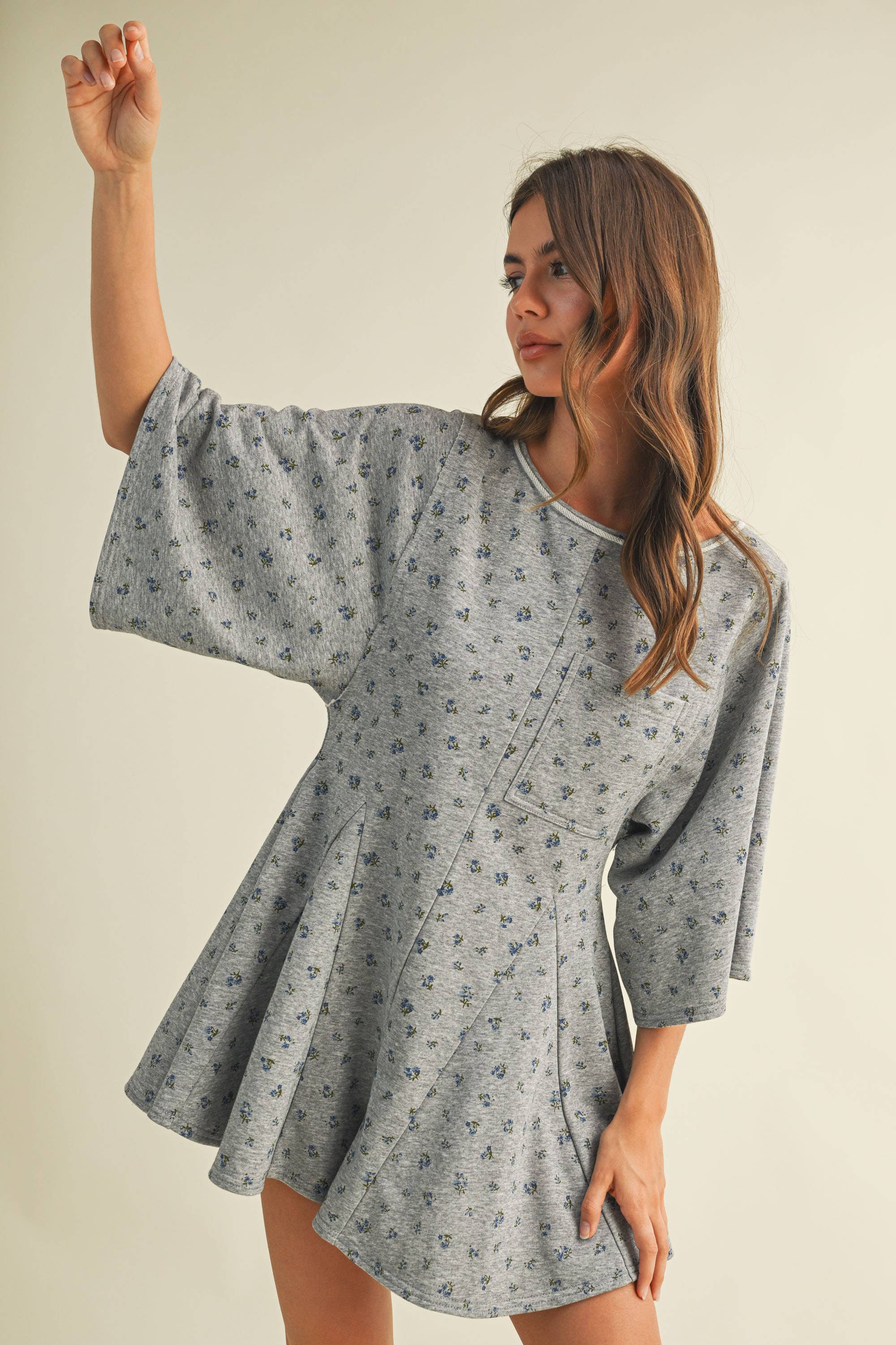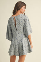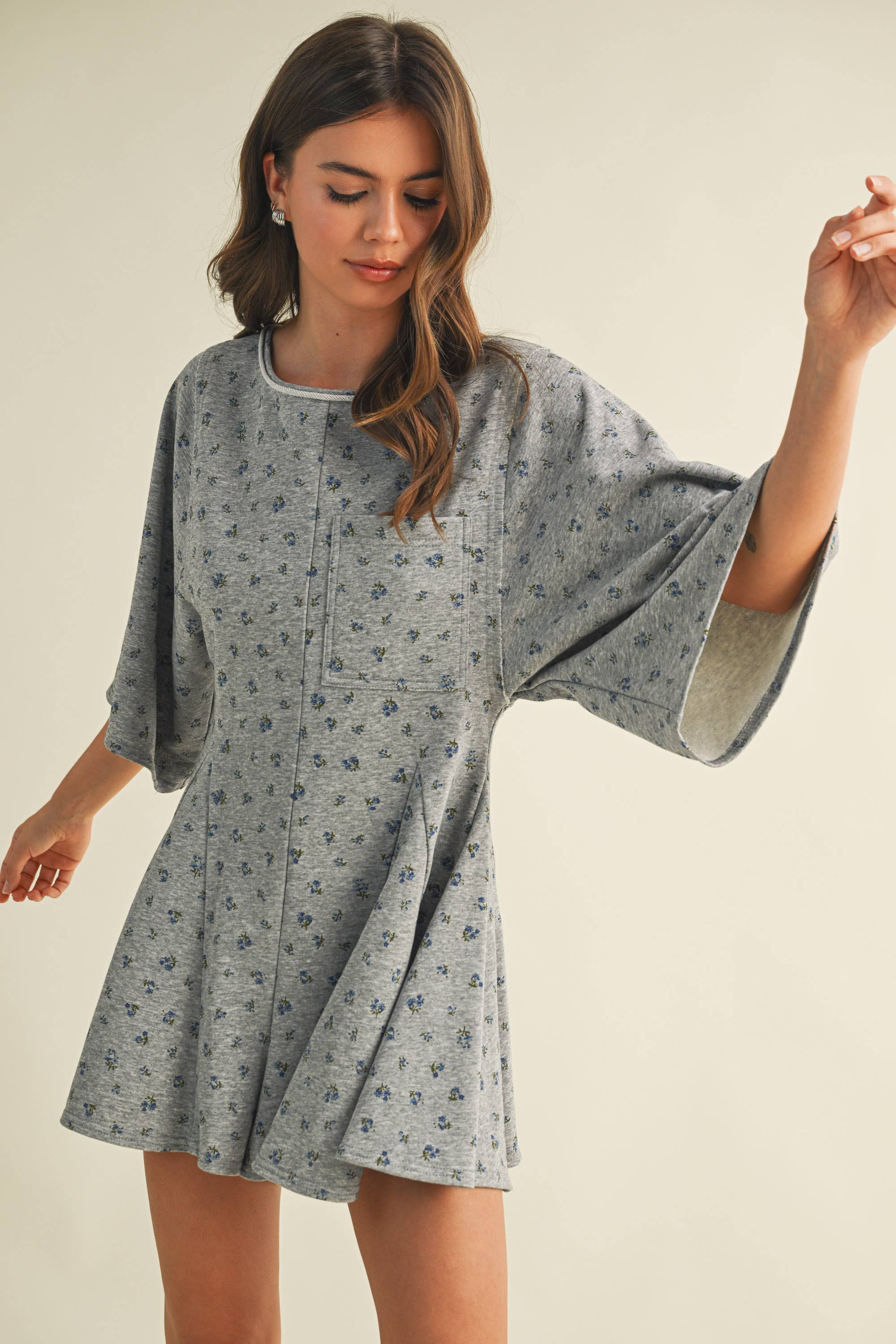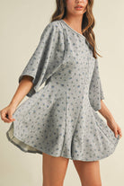 FLORAL FRONT POCKET GODET FLOWY ROMPER: Heather Grey