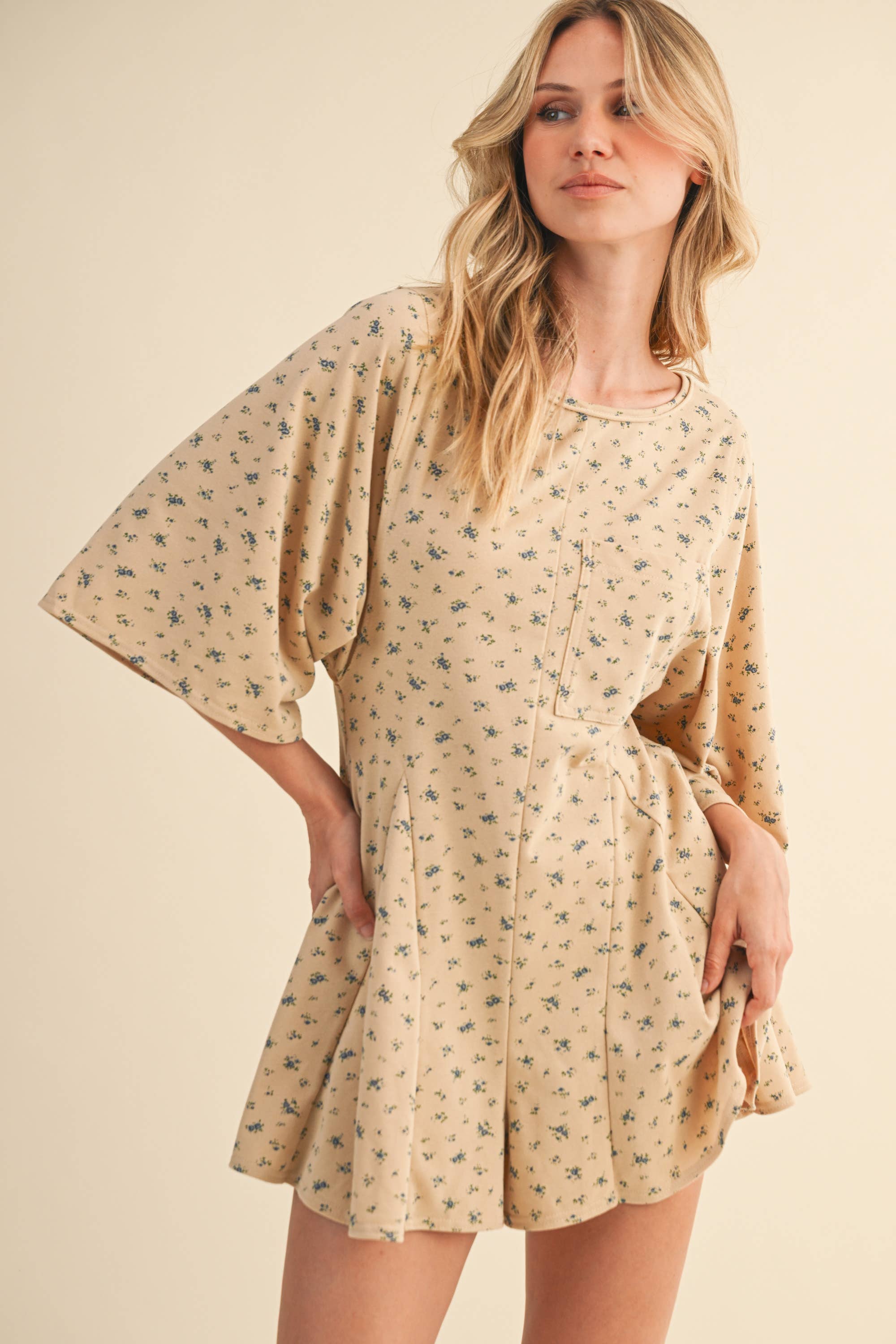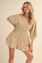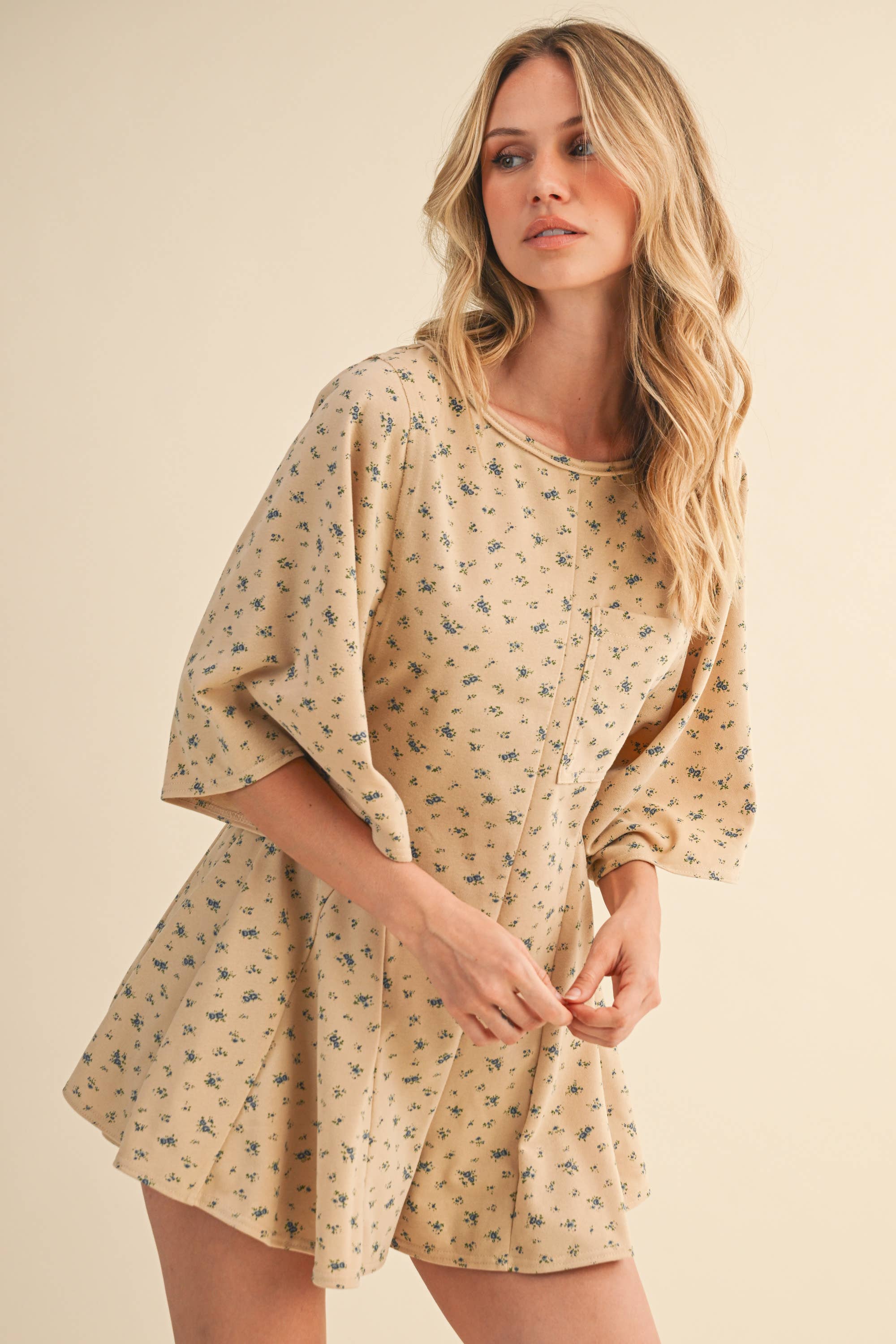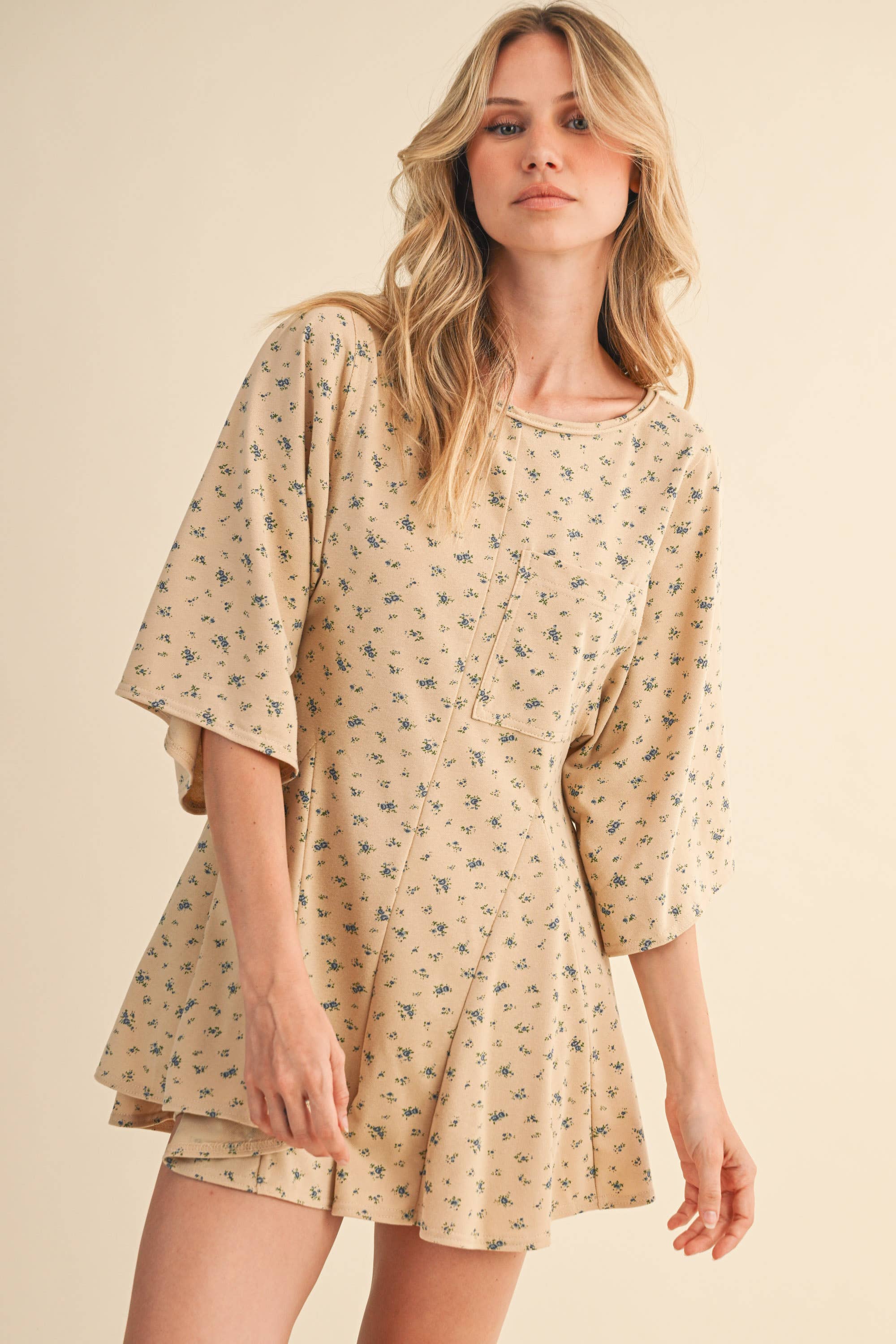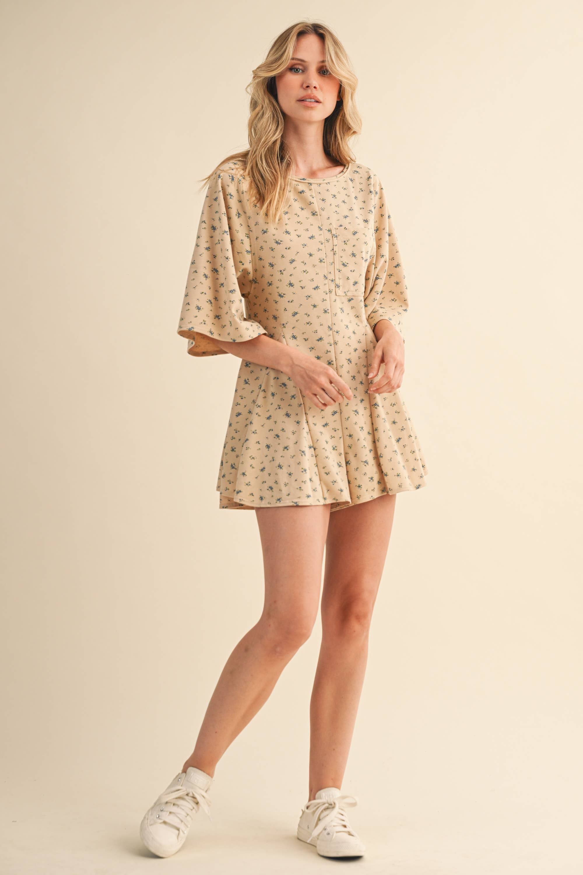FLORAL FRONT POCKET GODET FLOWY ROMPER
