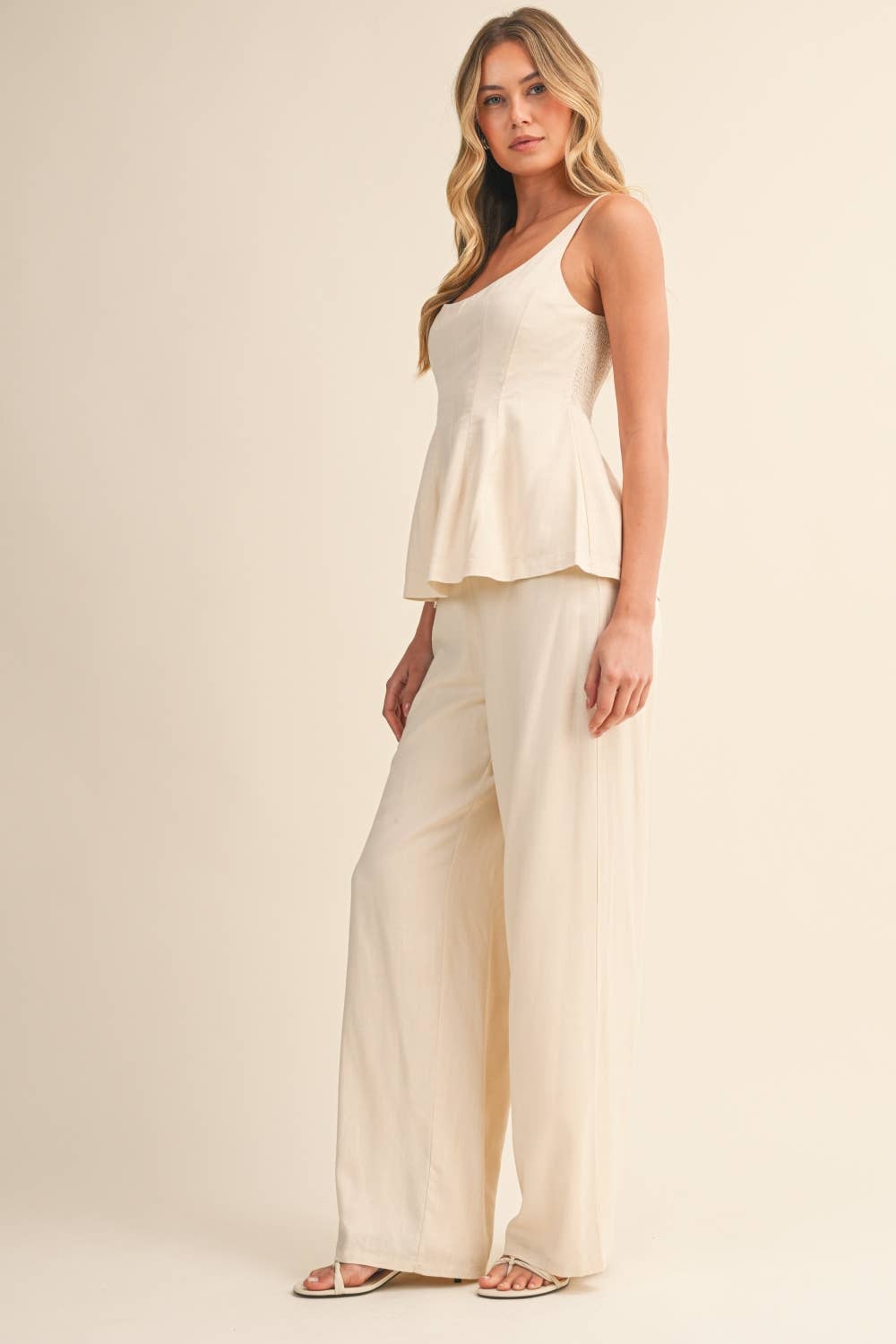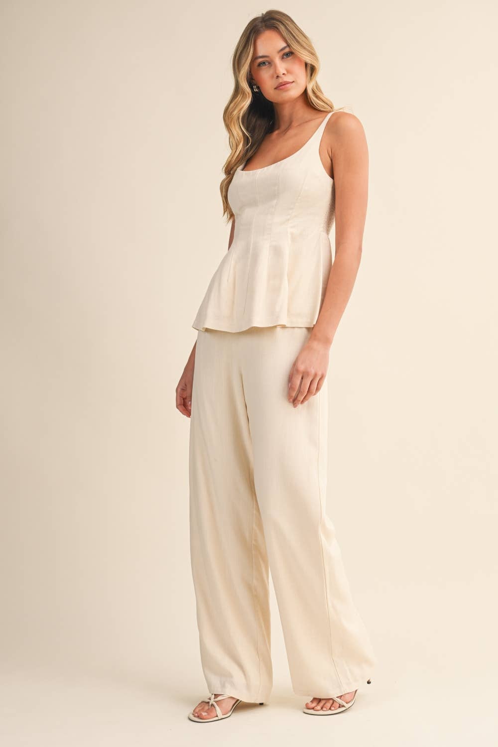 SLEEVELES TOP AND WIDE PANTS SET/FULLY LINED