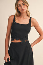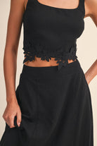 FLOWER EMROIDERED SLEEVELESS CROP TOP AND MIDI SKIRT