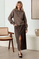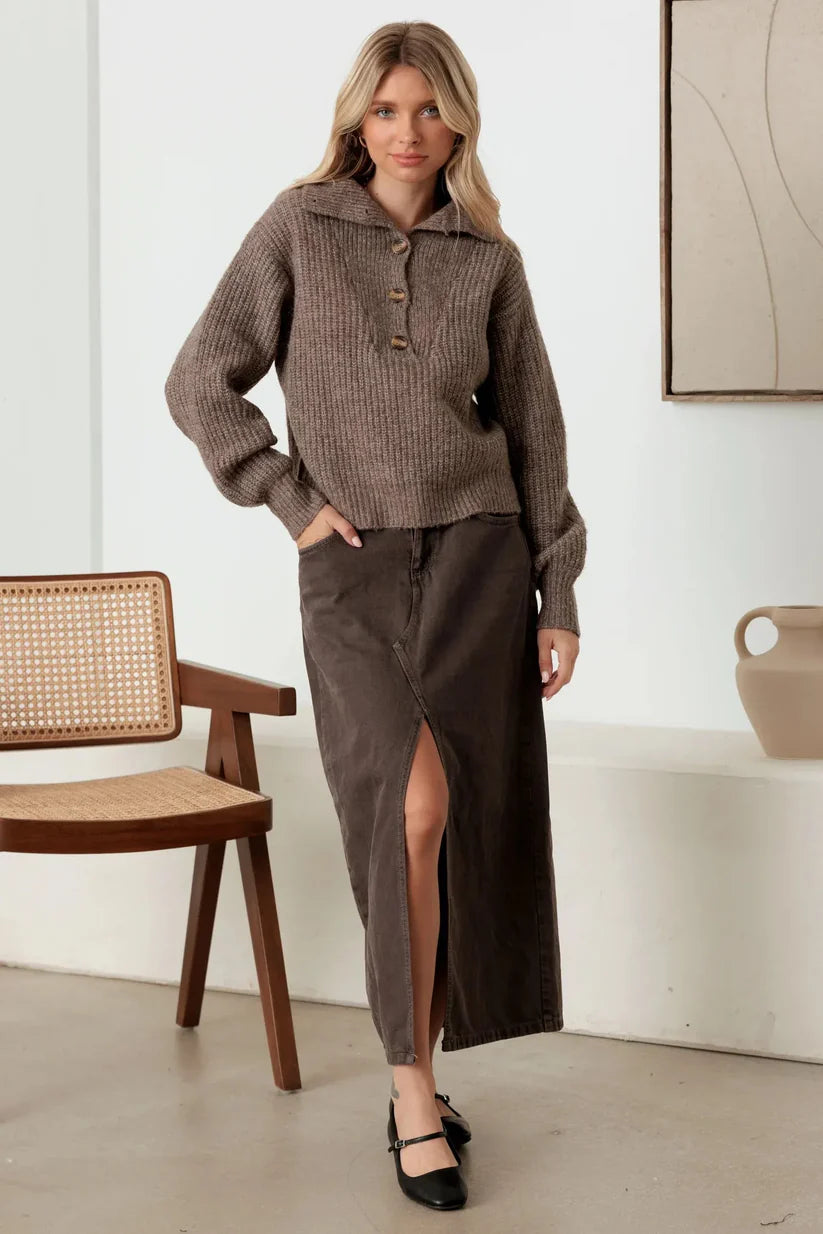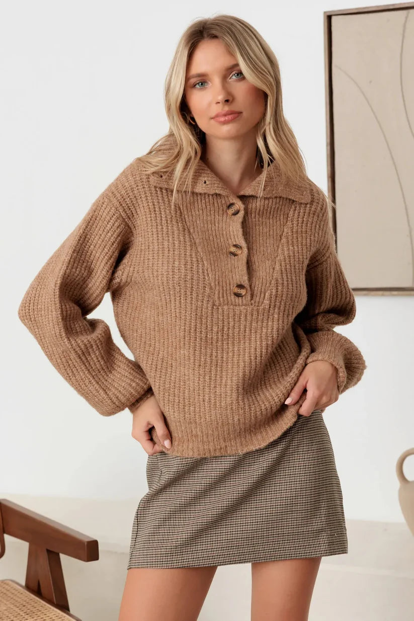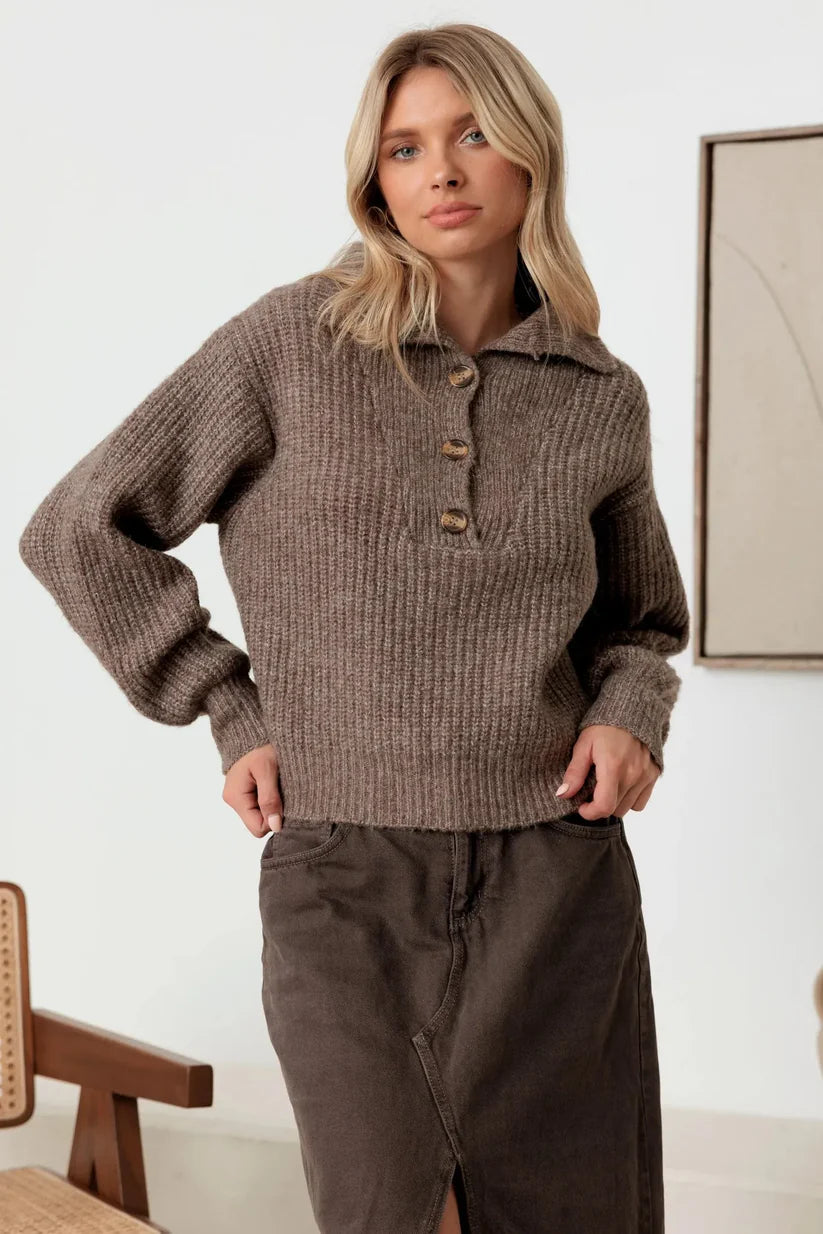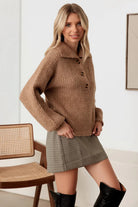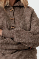 Mable 100% Wool Button-Up Neck Pullover Sweater