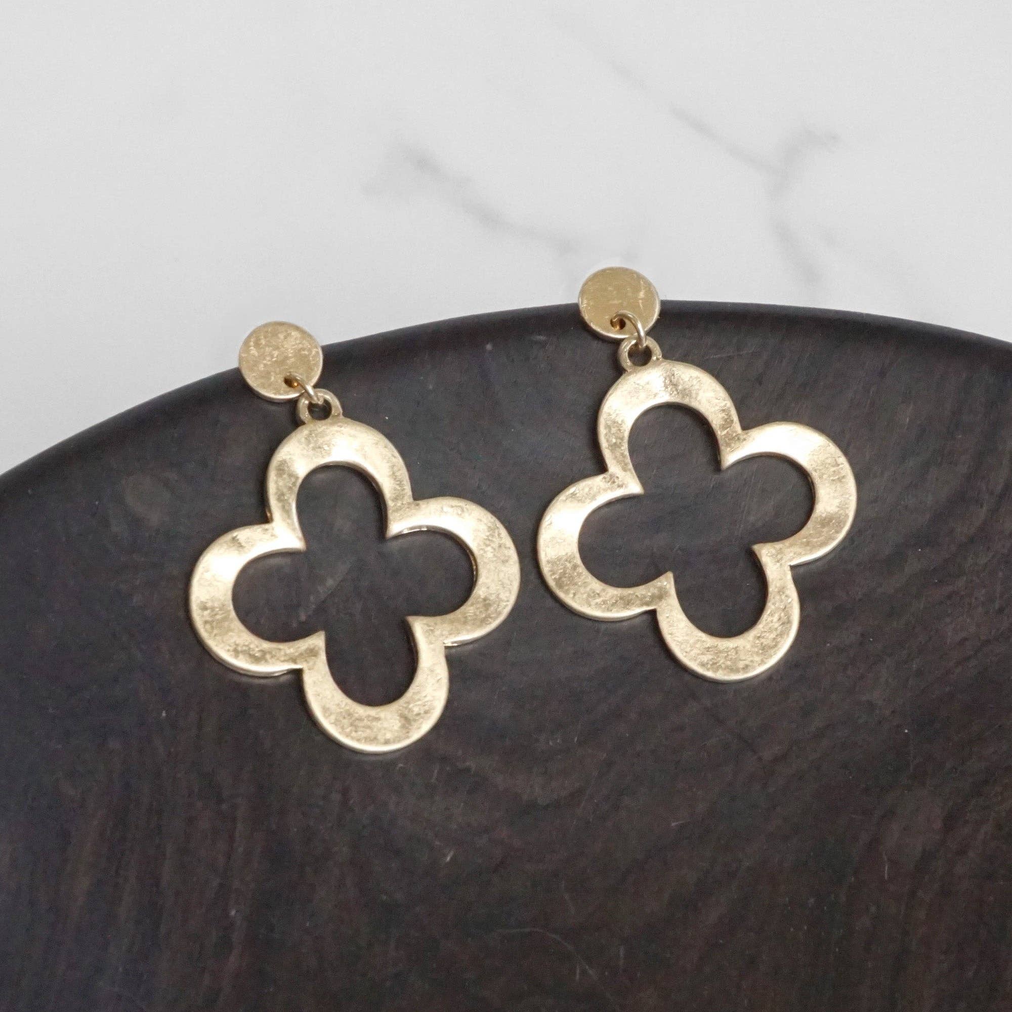Clover Hammered Distressed Drop Earrings - Gold & Silver Tones