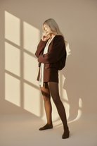 Designed for comfort, structure, and style, this transitional jacket is perfect for layering without bulk. The deep brown tone pairs beautifully with neutrals, denim, and seasonal textures—making it a must-have for capsule wardrobes and lovers of chic outerwear and minimalist luxury.