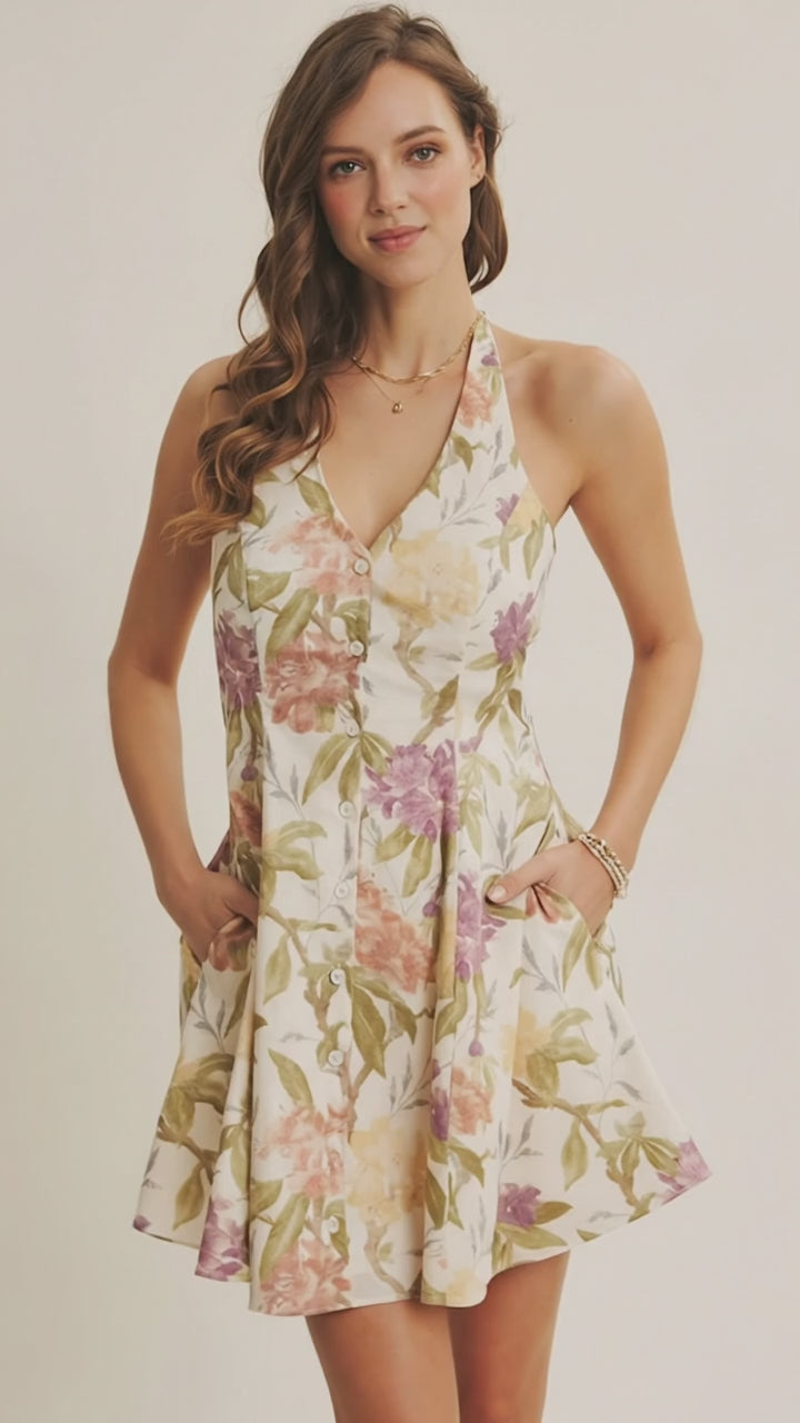 The Meadowlight Floral Halter Mini Dress