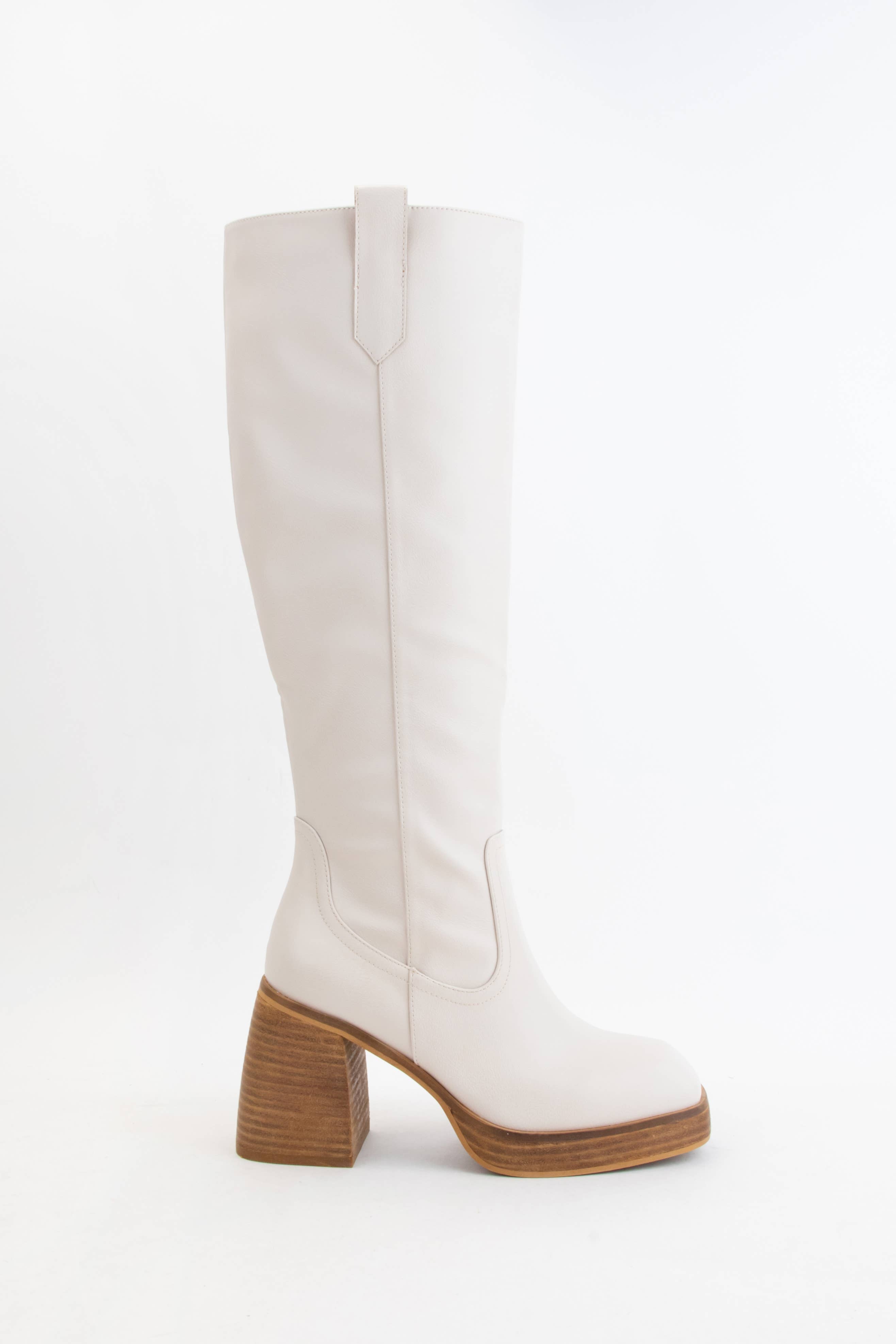 The Retro Rise Slim Fit Tall Platform Boots in Bone