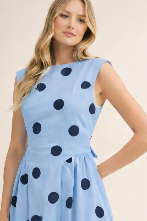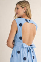 Classic charm meets easy, everyday elegance in The Sunday Stroll Polka Dot Midi Dress by Klesis. This breezy blue and navy polka dot midi dress with a sleeveless silhouette and a softly structured fit, this timeless piece features a flattering open back with an adjustable waist tie that lets you customize your shape just the way you like it. The midi length adds a polished finish while still keeping things light and wearable for everything from brunch dates to boutique strolls.