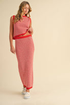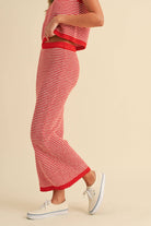 Designed in a vibrant tomato stripe that adds the perfect pop of personality, this matching two-piece set gives you comfort where you want it and structure where you need it. The soft sweater knit blend moves with you, making it just as perfect for a casual day out at the boutique as it is for weekend brunch or travel days when you still want to look cute without sacrificing comfort.