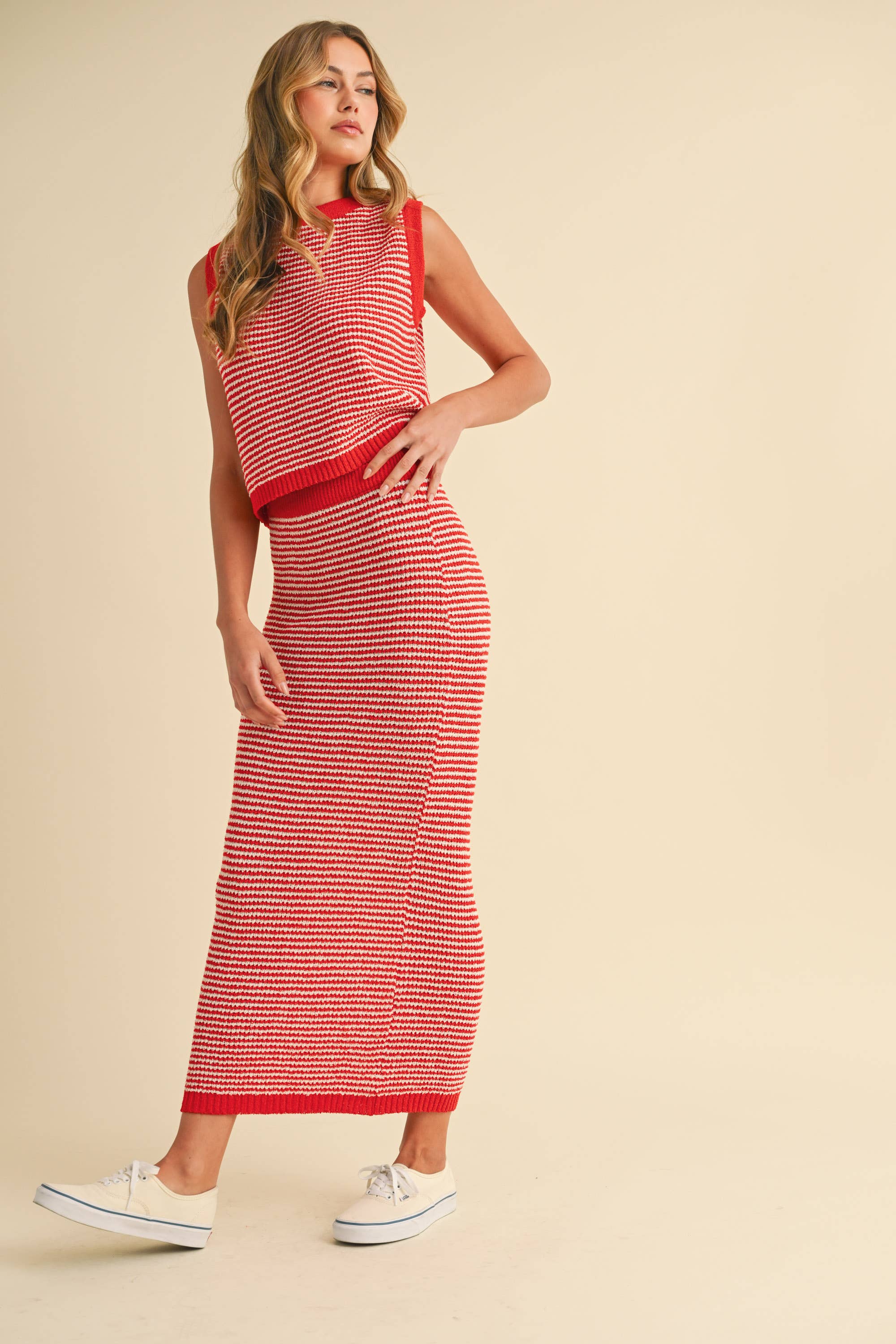 Meet the set that makes getting dressed feel like you actually planned your outfit ahead of time (even when you didn’t). The Sunset Stripe Knit Skirt Set features a cozy sleeveless sweater knit top paired with a sleek maxi-length pencil skirt for that effortlessly pulled-together look your Thread Lightly girls live for.