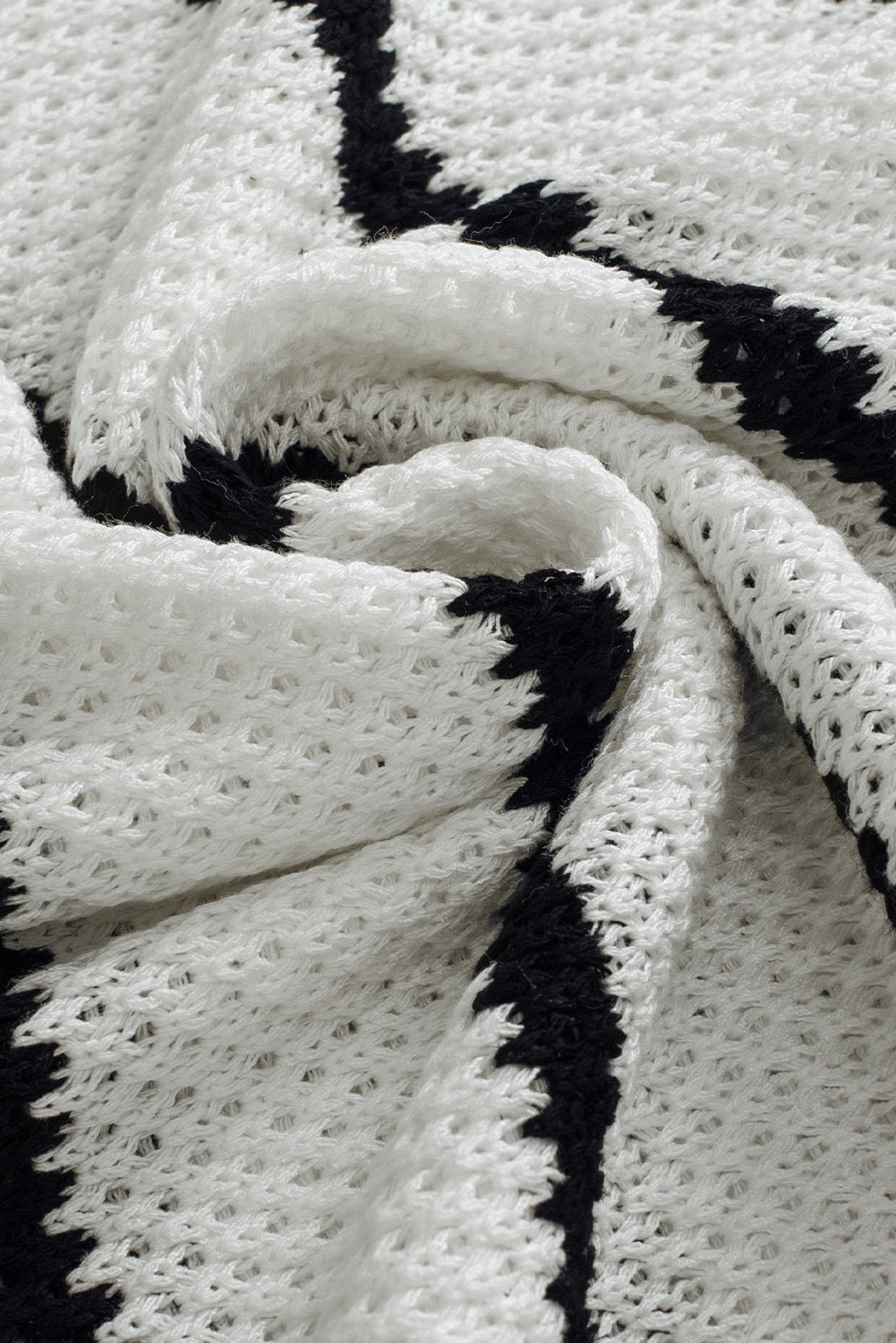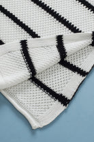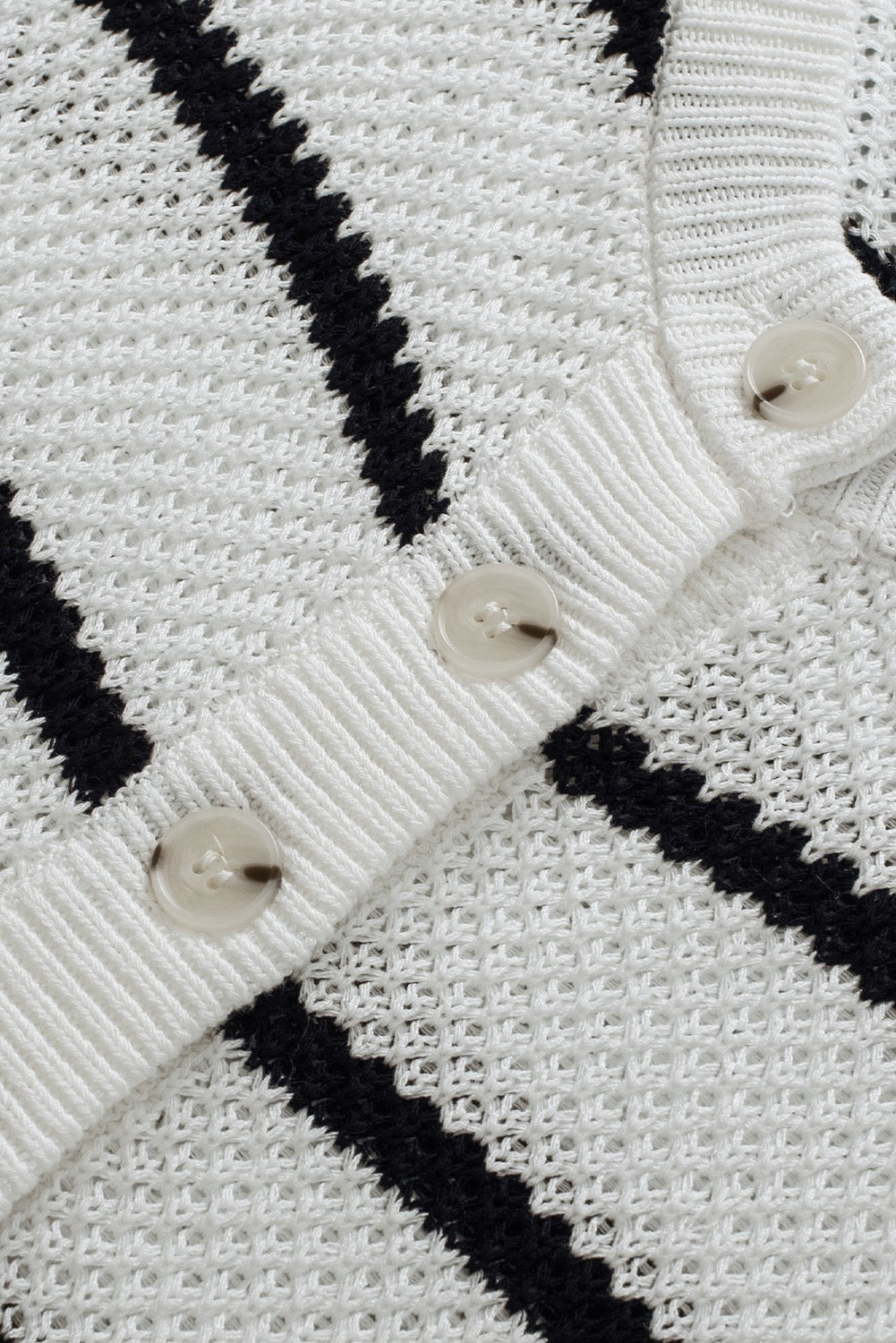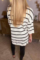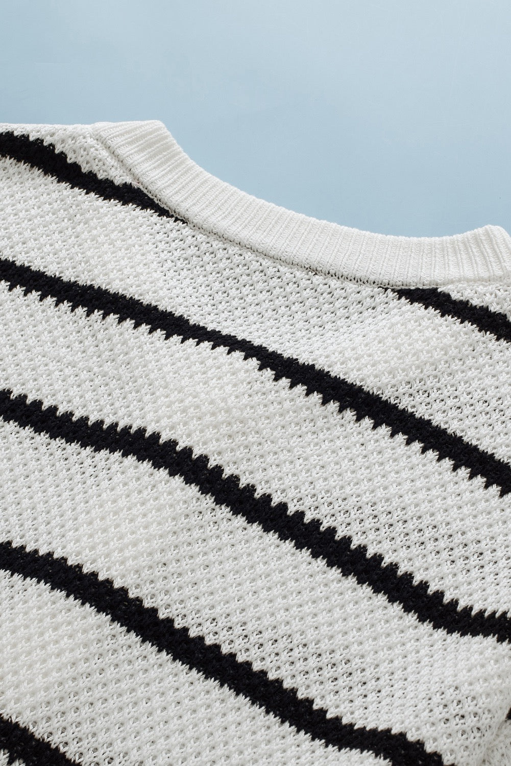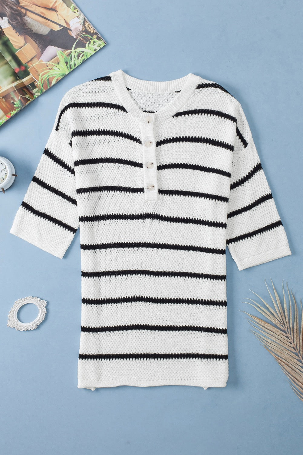 White Stripe Henley Buttoned Placket Drop Shoulder Bracelet Sleeve Knit Sweater Tee