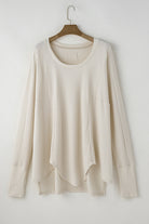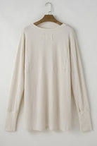 White Waffle Knit Exposed Seam V Neck Oversized Top