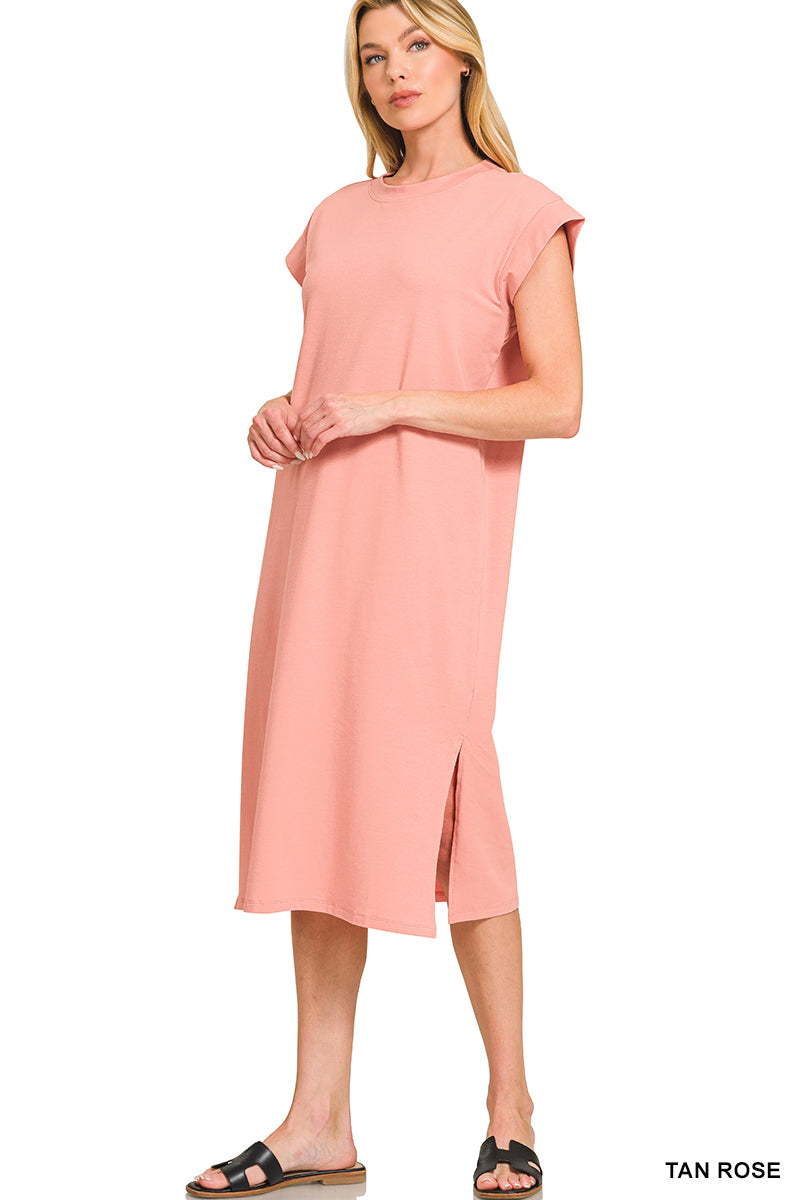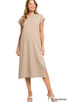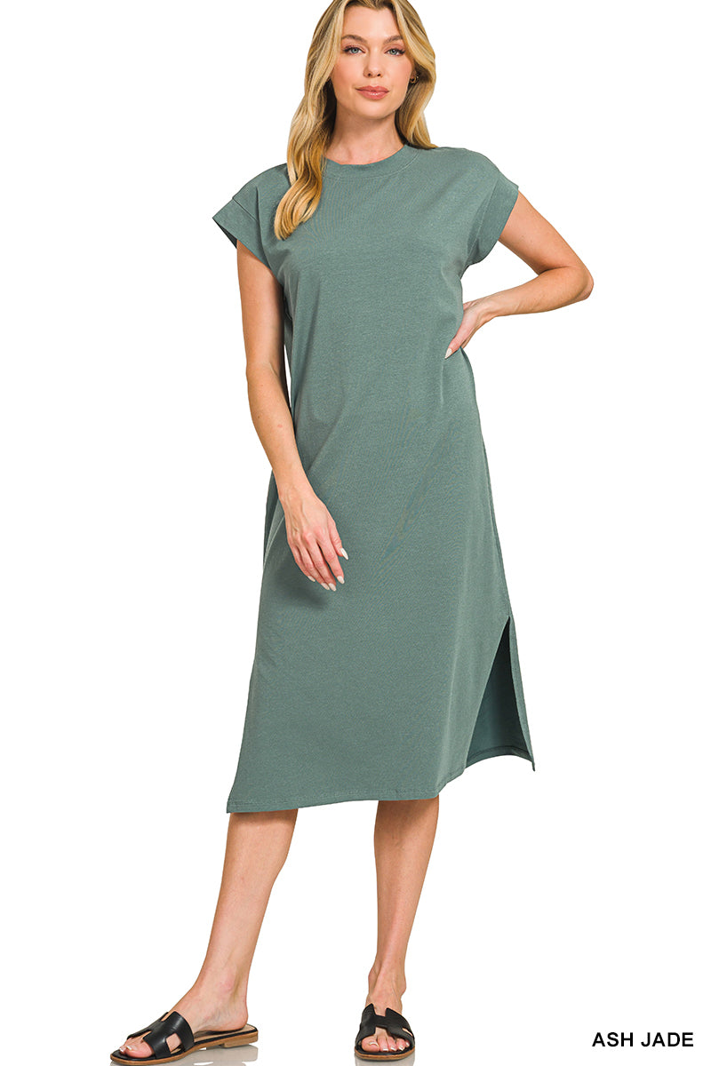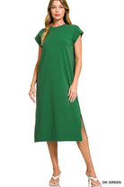 Effortless elegance meets everyday comfort in this Zenana midi dress. Featuring a classic round neckline and cap sleeves, the relaxed silhouette skims the body while side slits add movement and dimension. Perfect for casual outings or dressed up for any occasion. Available in 9 versatile colors to match your personal style.
