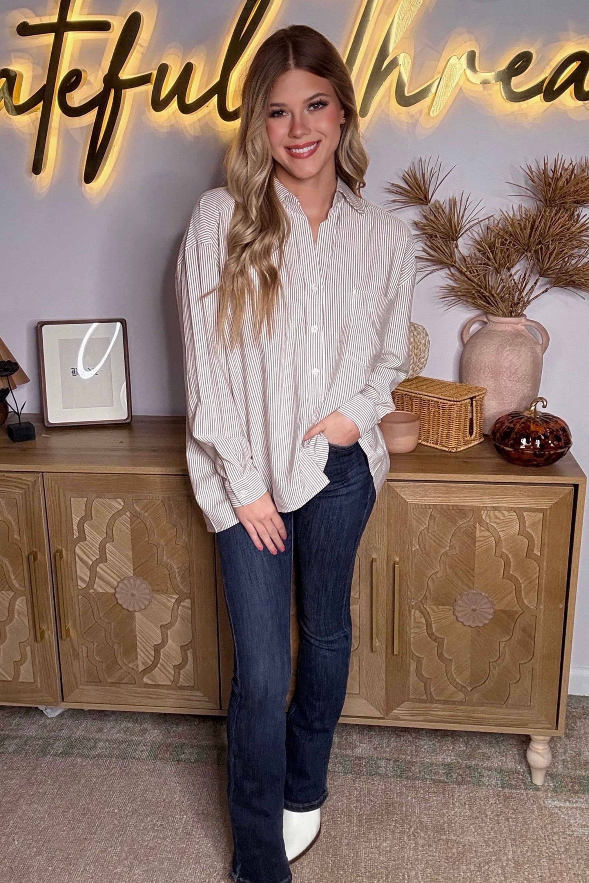 - new arrivals, new 2025, active basic, active usa, stripe shirt, button down shirt, collared, oversize shirt, office look, casual, trending, must have