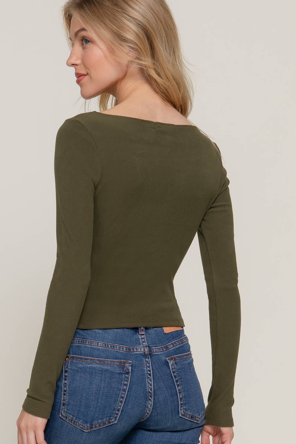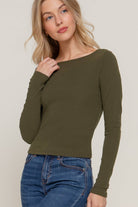 Active Basic | Active USA - Long Sleeve Boat Neck Brushed Rib Knit Top in Olive