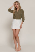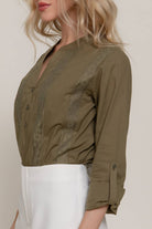 Active Basic | Active USA - Light Olive Long Sleeve Lace Panel Woven Blouse