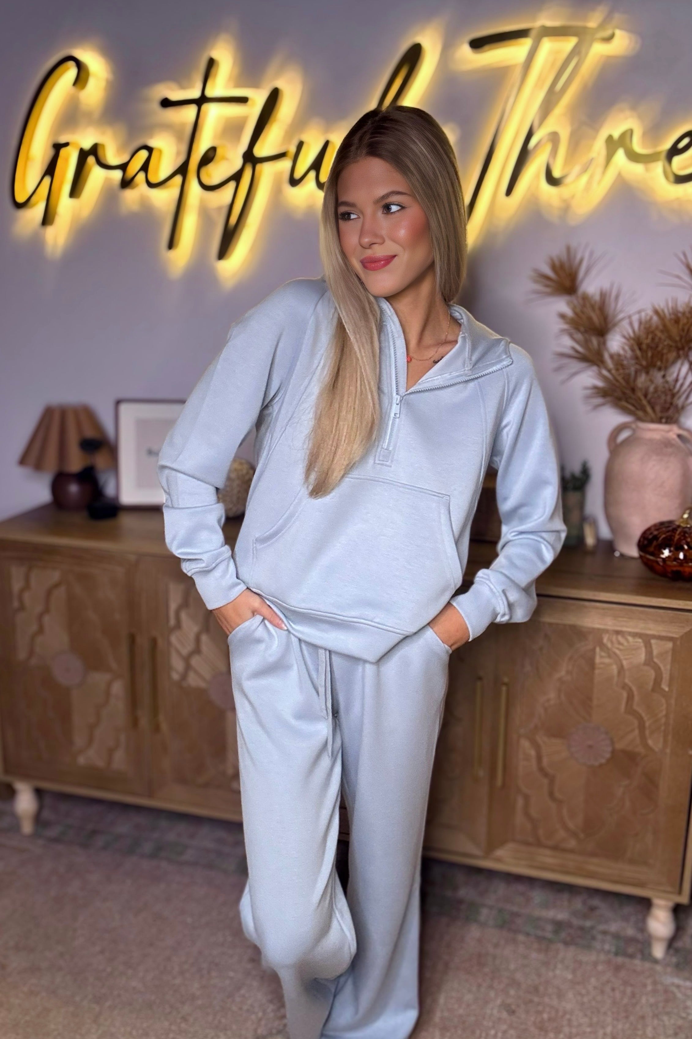 Zenana Scuba Crewneck Pullover & Pants 2 Pieces Set