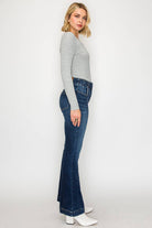 Crafted from super stretchy, high-quality denim, these jeans move with you while maintaining their structure for a sleek, polished look. The wide waistband provides extra support and smoothing through the waist, while the dart-detailed modern flare leg elongates the silhouette for a timeless yet contemporary vibe. Finished in a modern dark stone wash with a wide hem, these flares are effortlessly flattering from every angle.