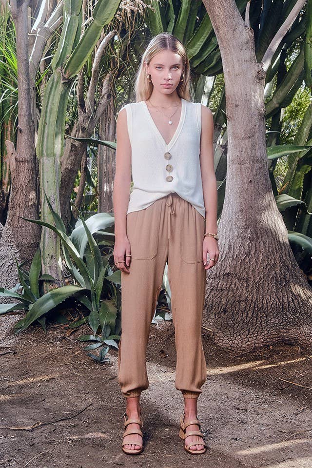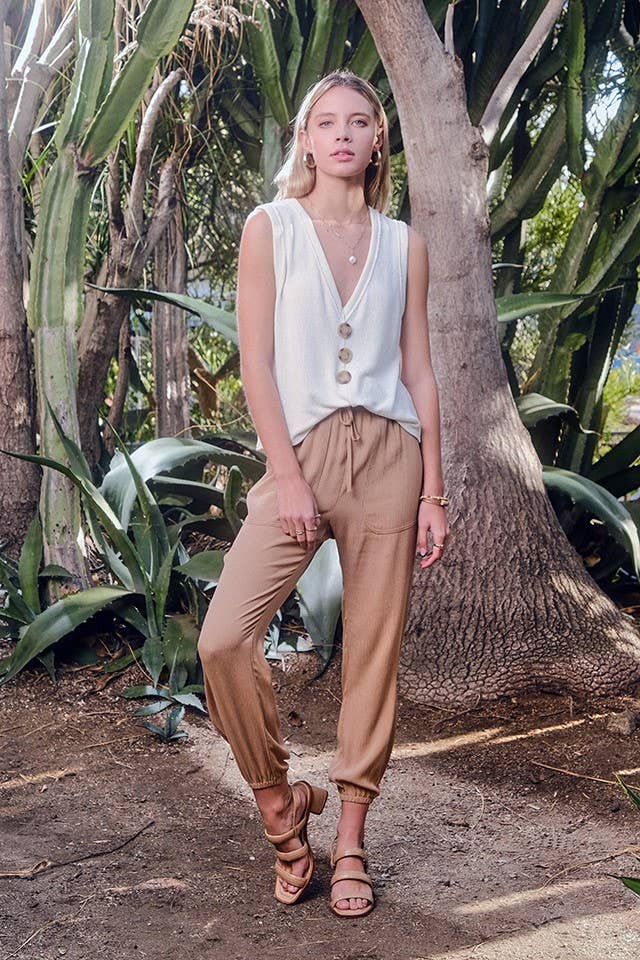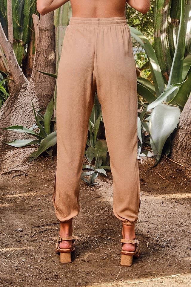 Endless Blu Crinkled Rayon Patch Pocket Ankle Pants with Slit