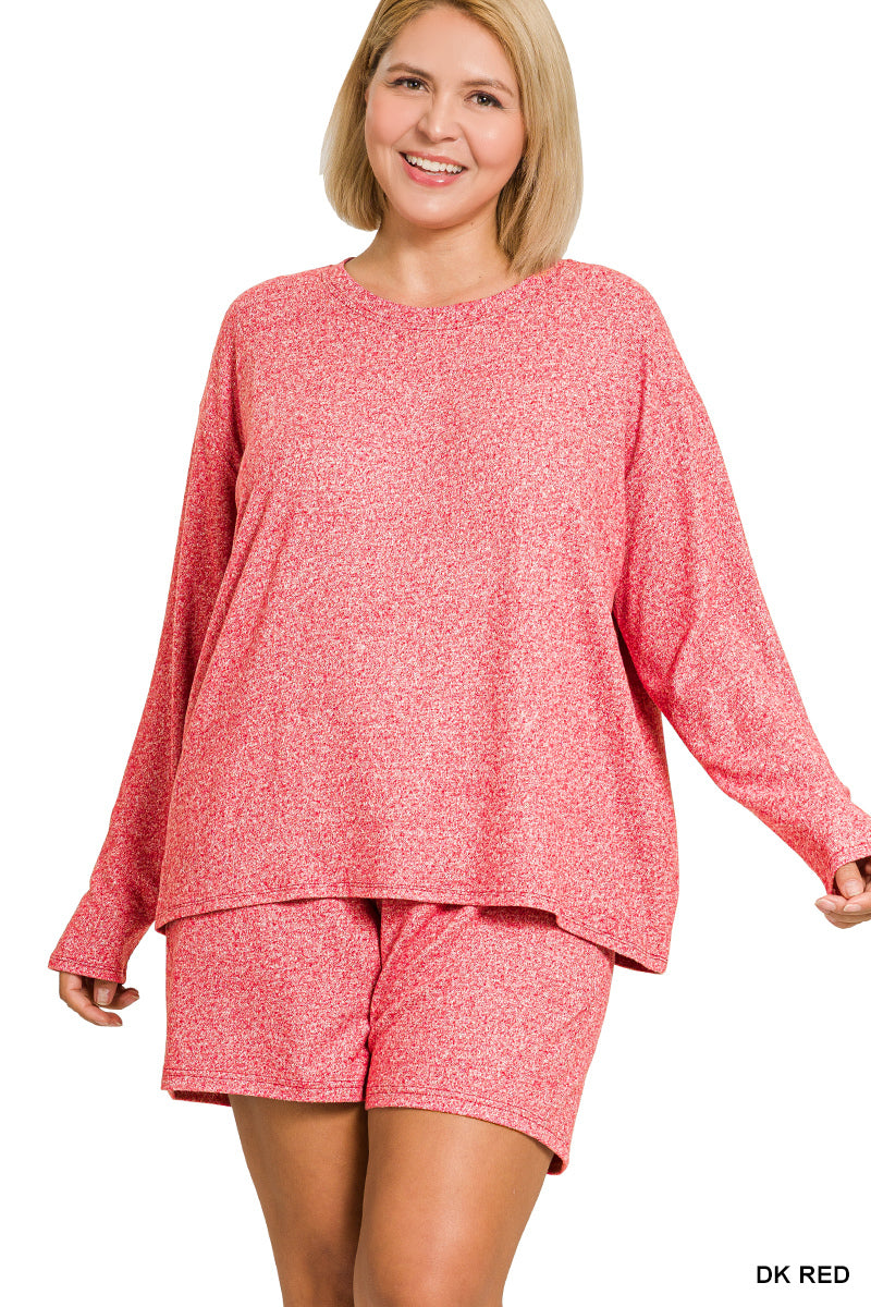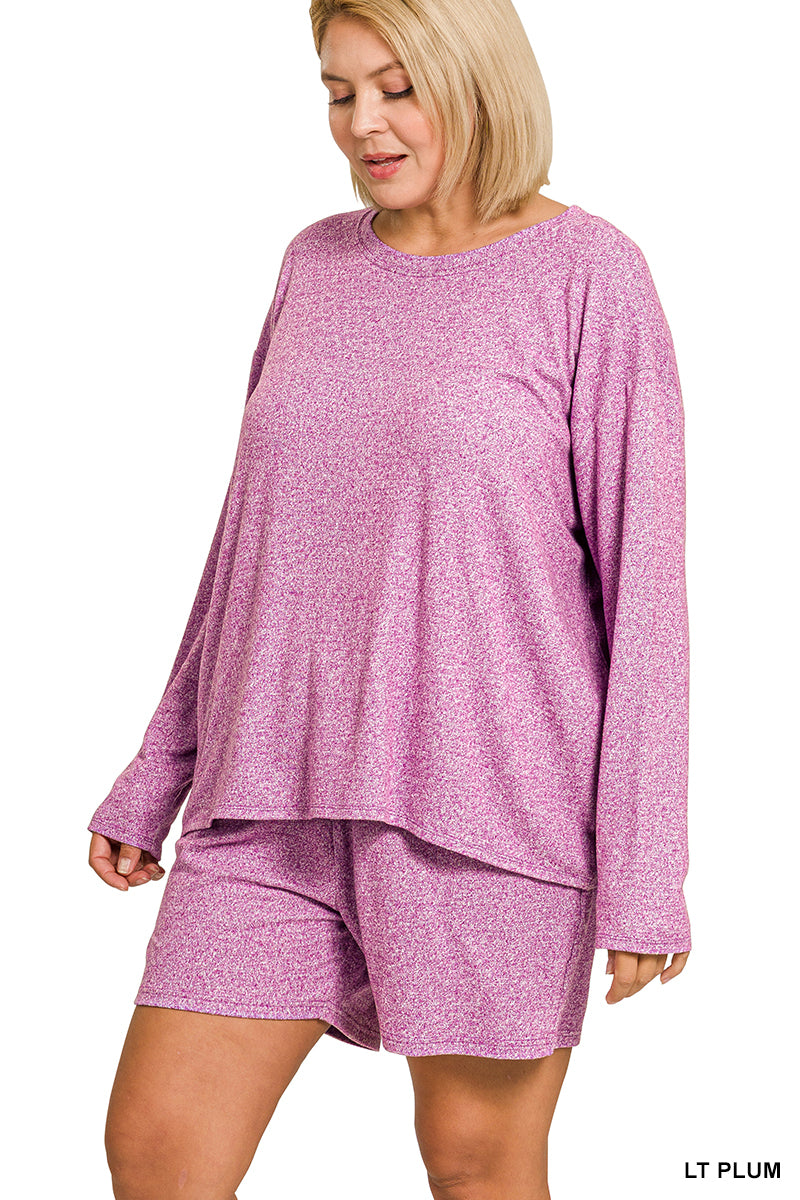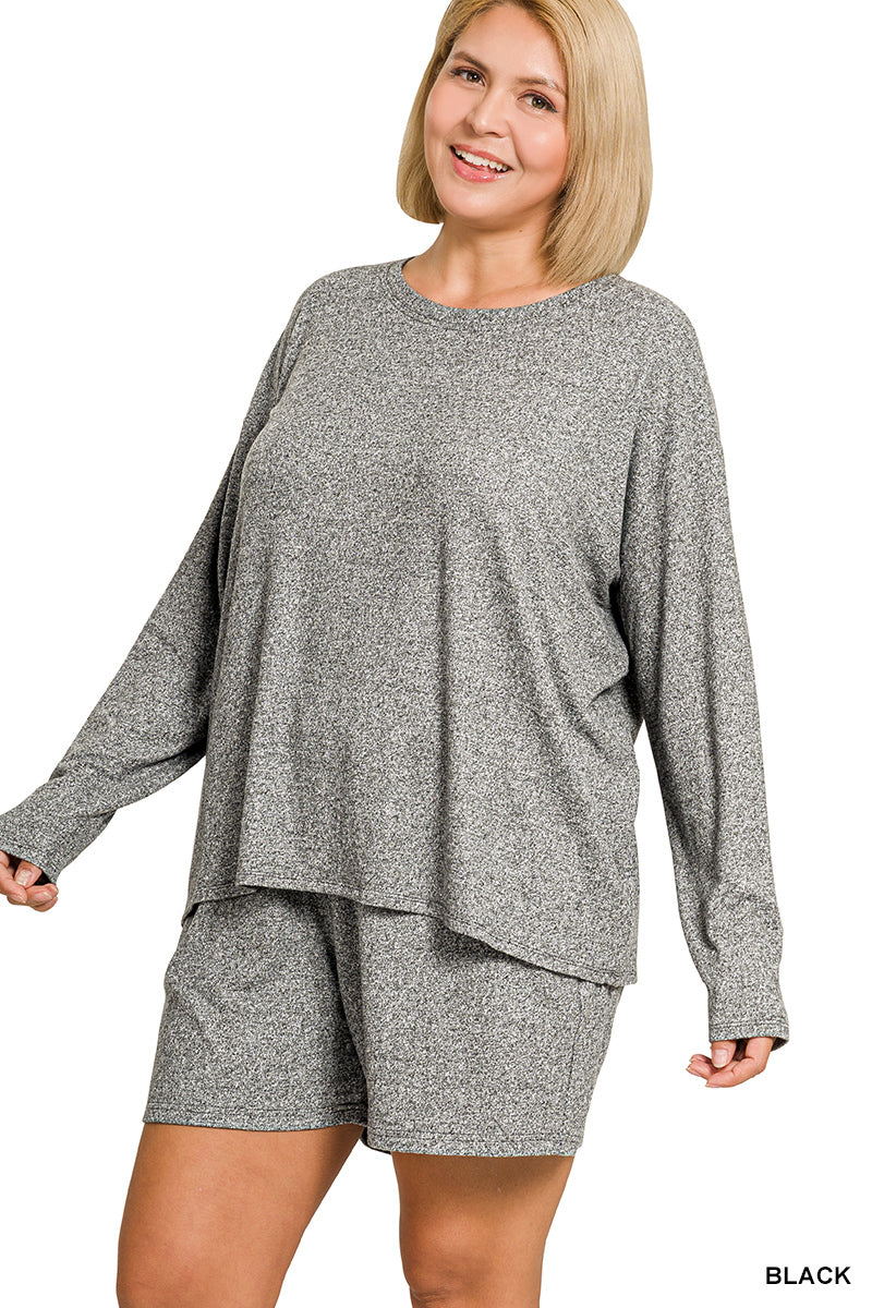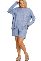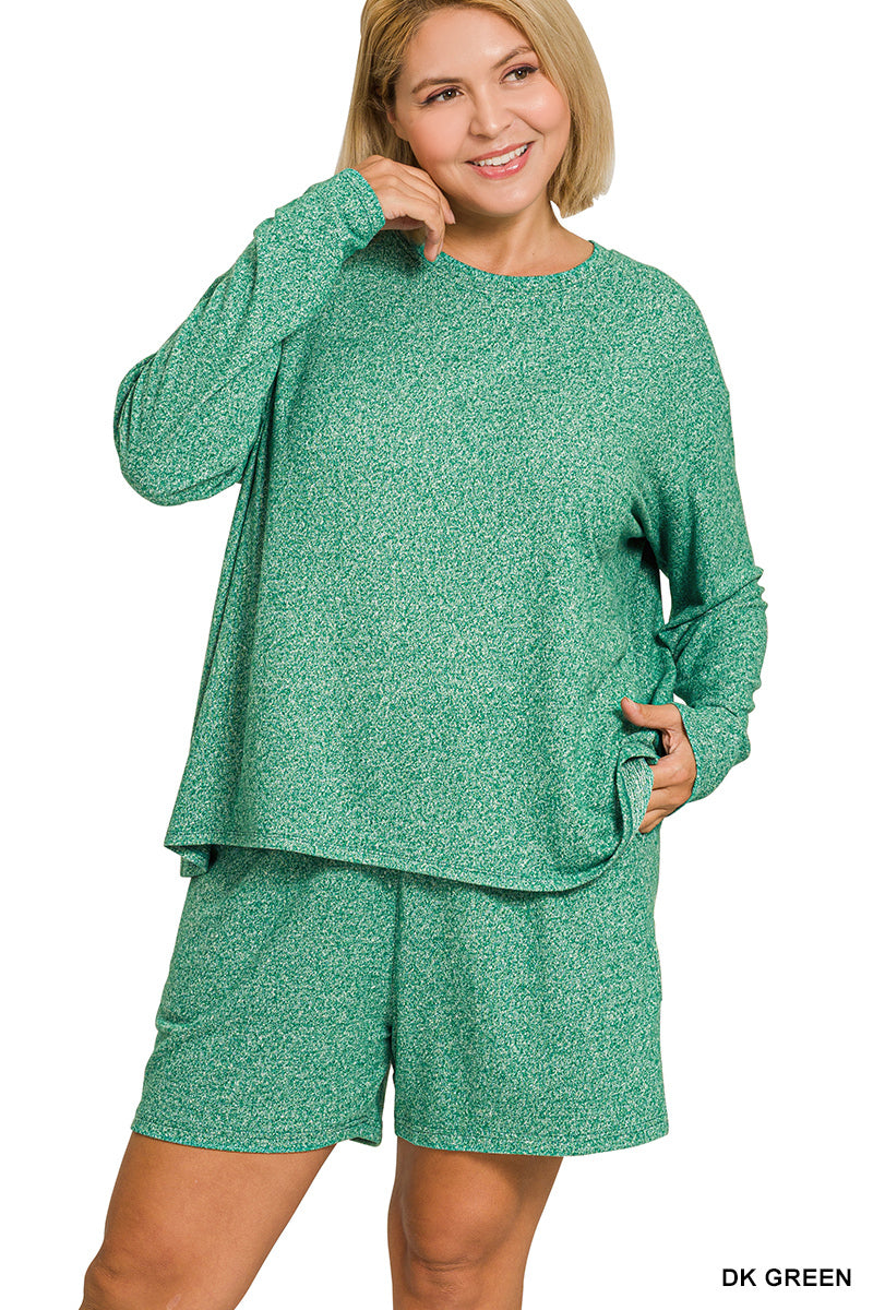 Zenana Plus Soft Melange Long Sleeve Tee & Shorts Set
