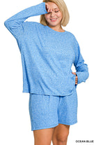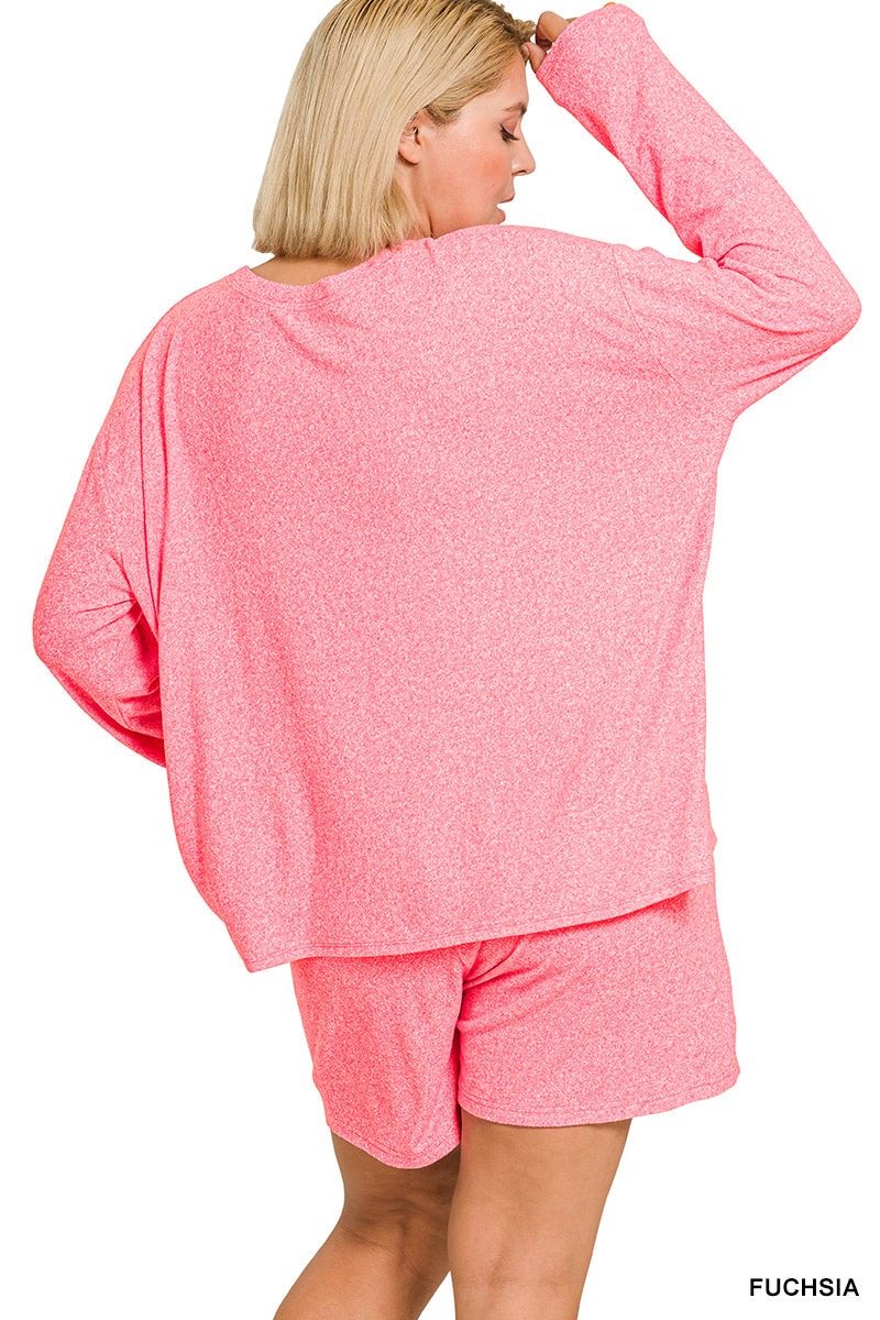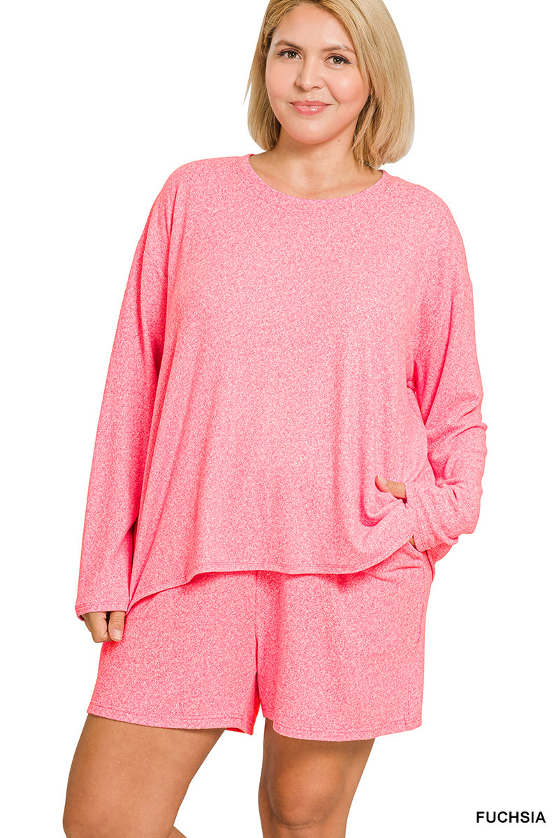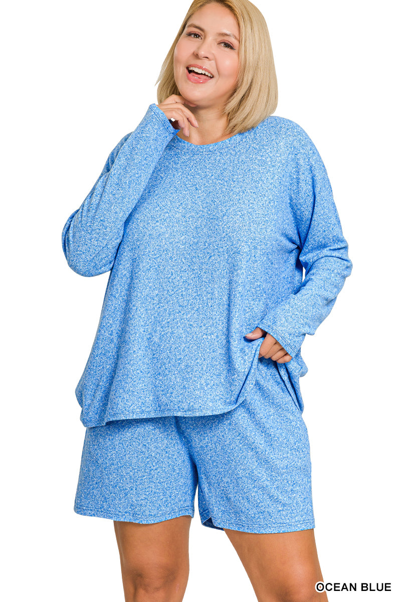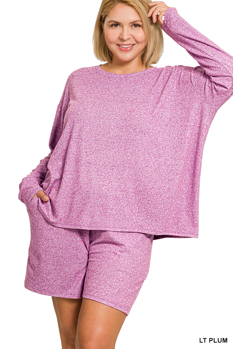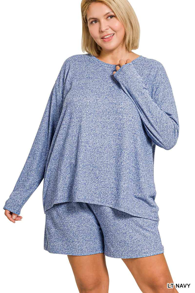 Zenana Plus Soft Melange Long Sleeve Tee & Shorts Set