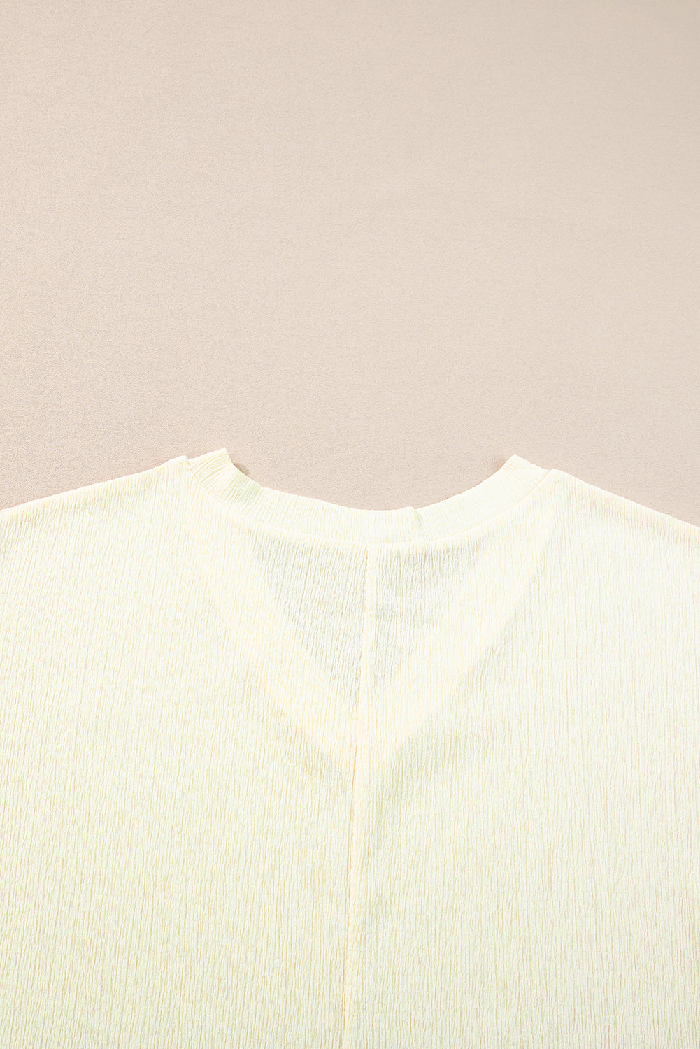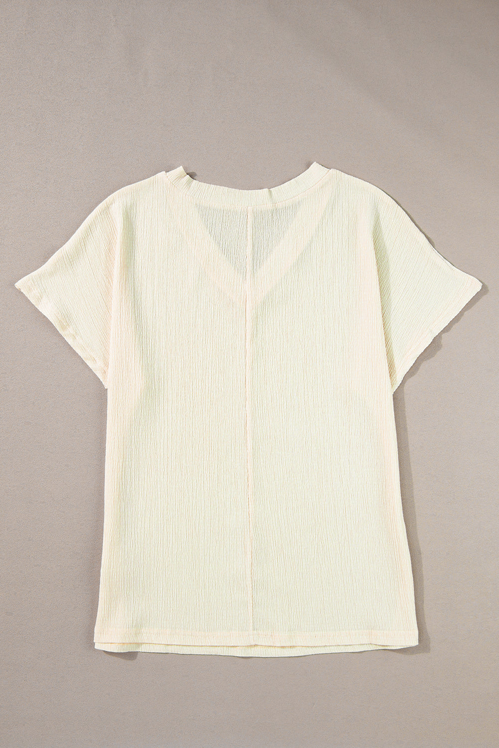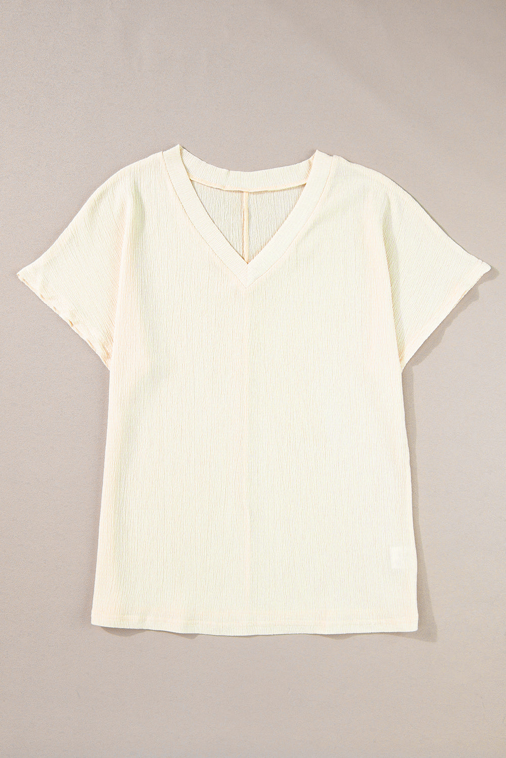 Apricot Crinkled V Neck Wide Sleeve T-shirt
