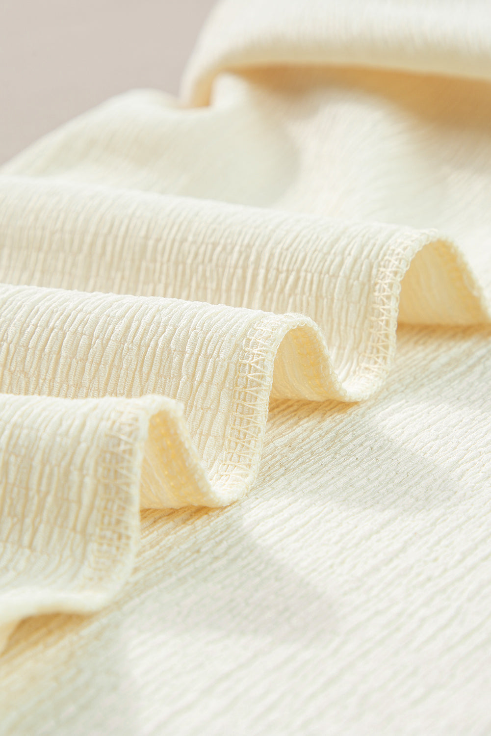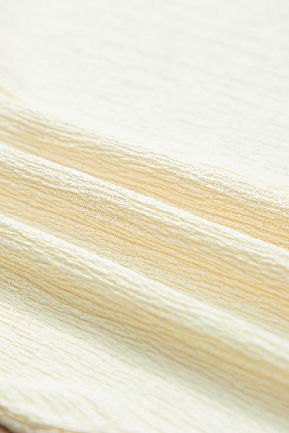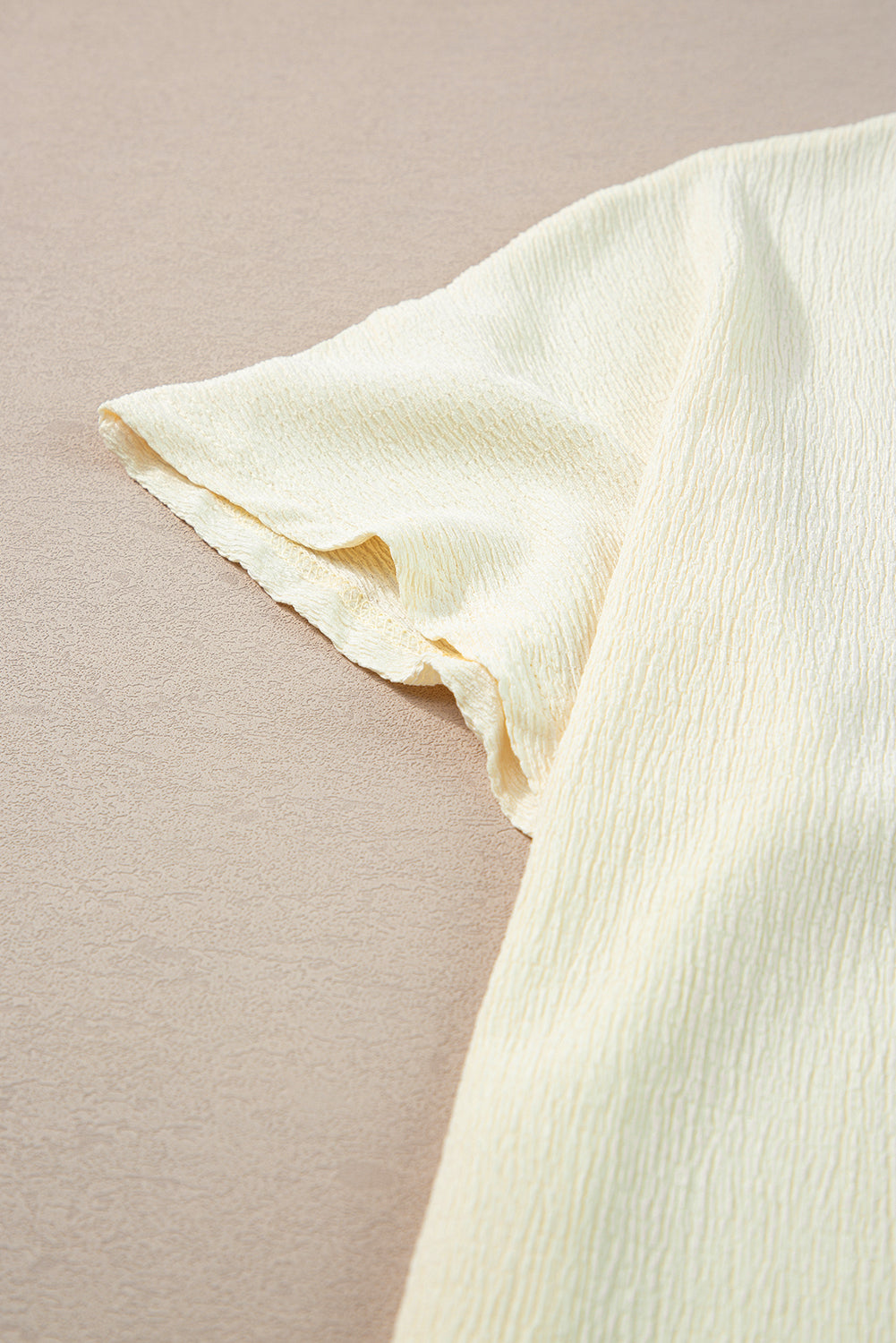 Apricot Crinkled V Neck Wide Sleeve T-shirt