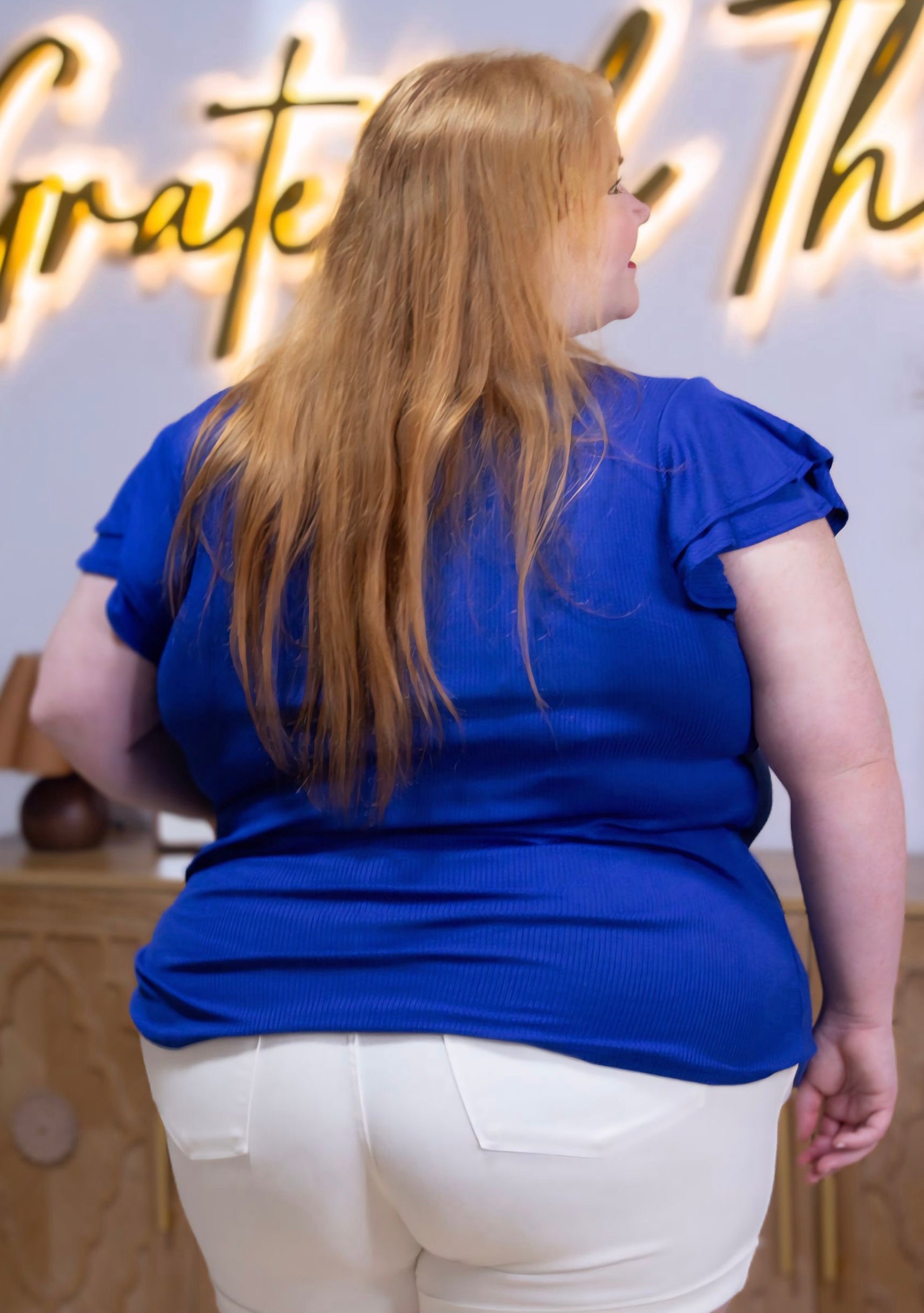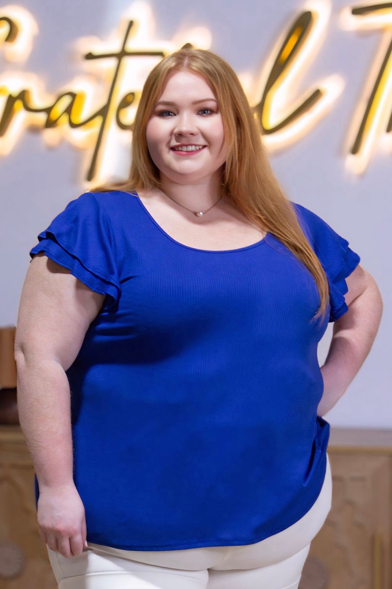 Plus Size Short Fluttery Sleeves Round Neck Top