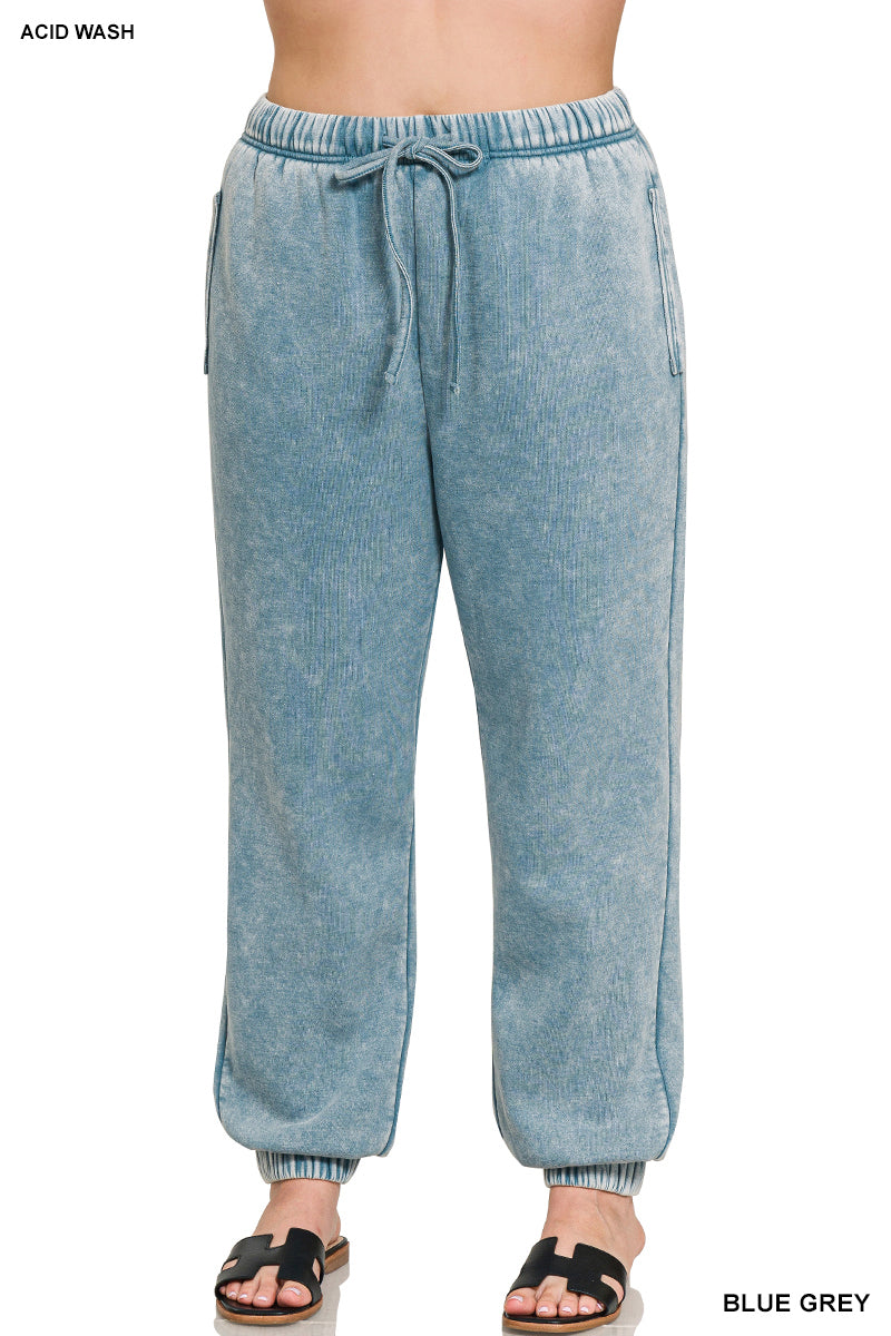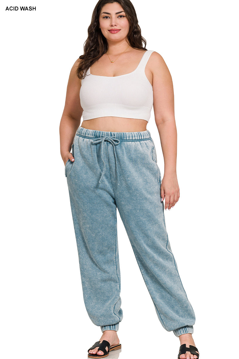 Zenana Plus Acid Wash Fleece Sweatpants with Pockets