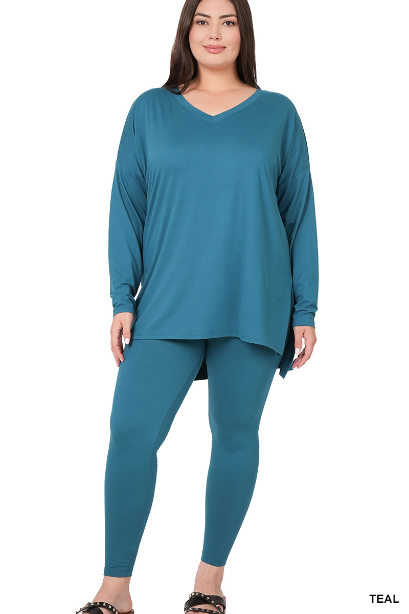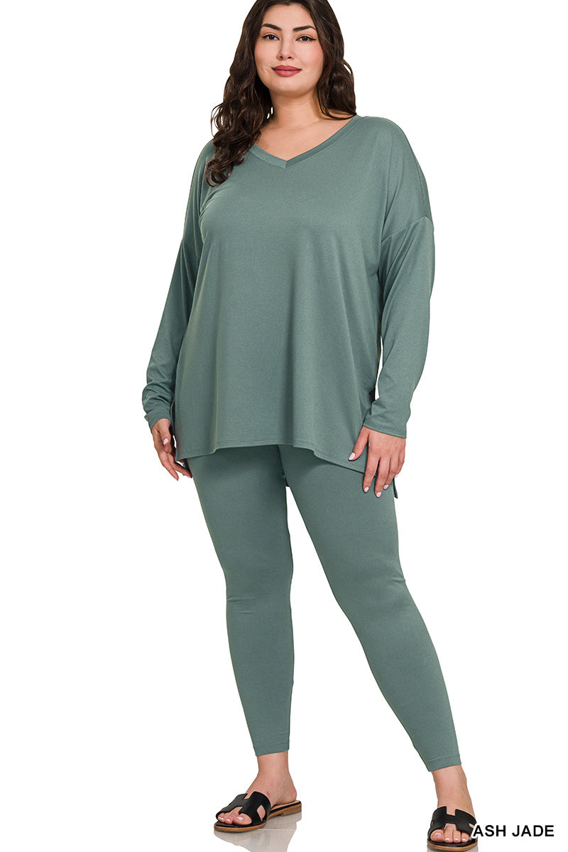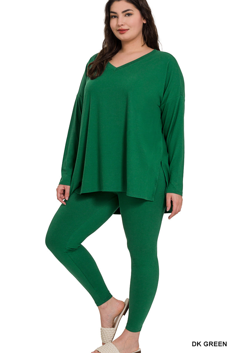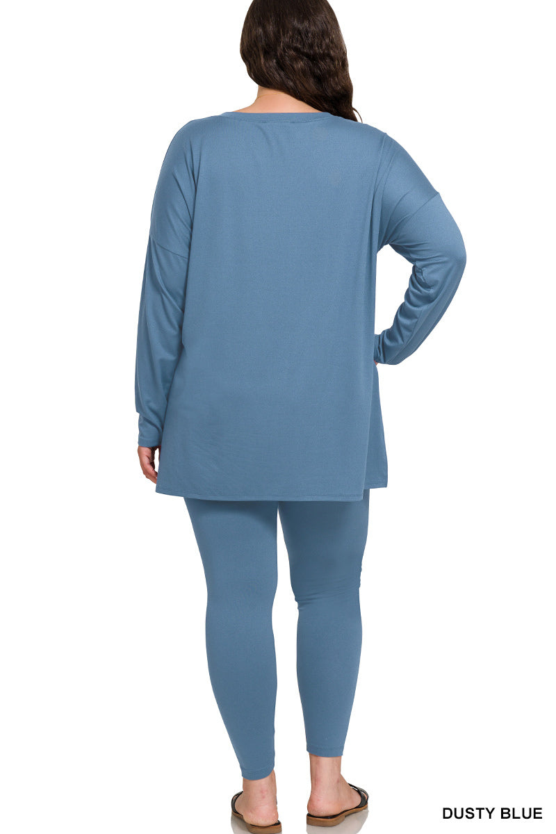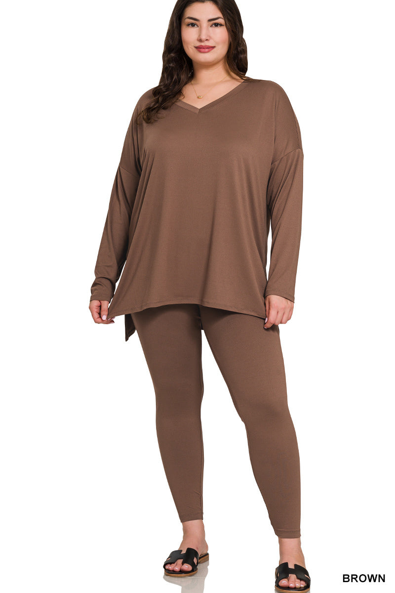 Zenana Plus Brushed Drawn Textured Yarn Microfiber Loungewear Set