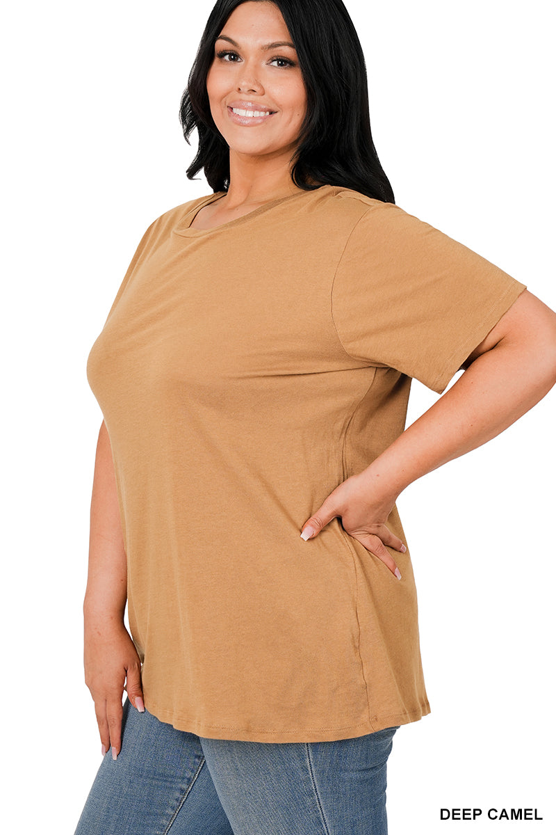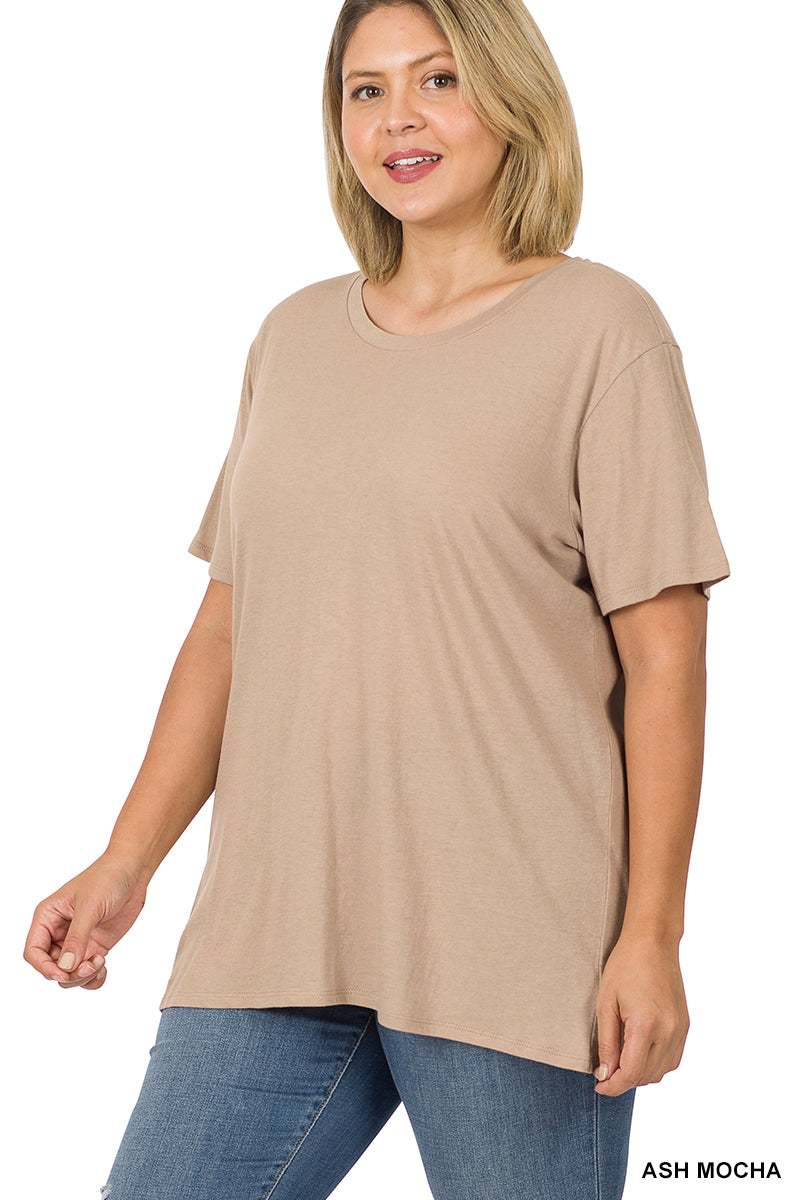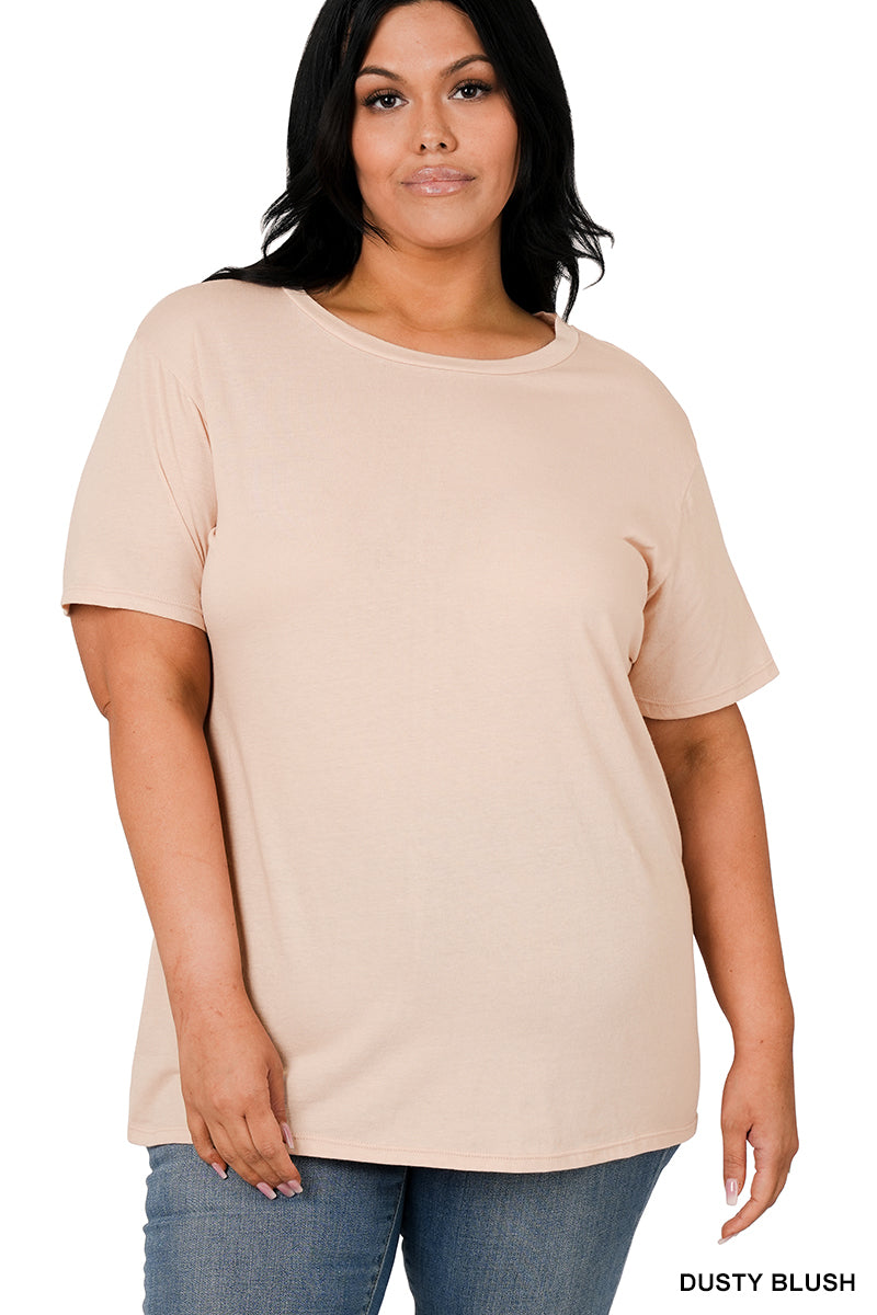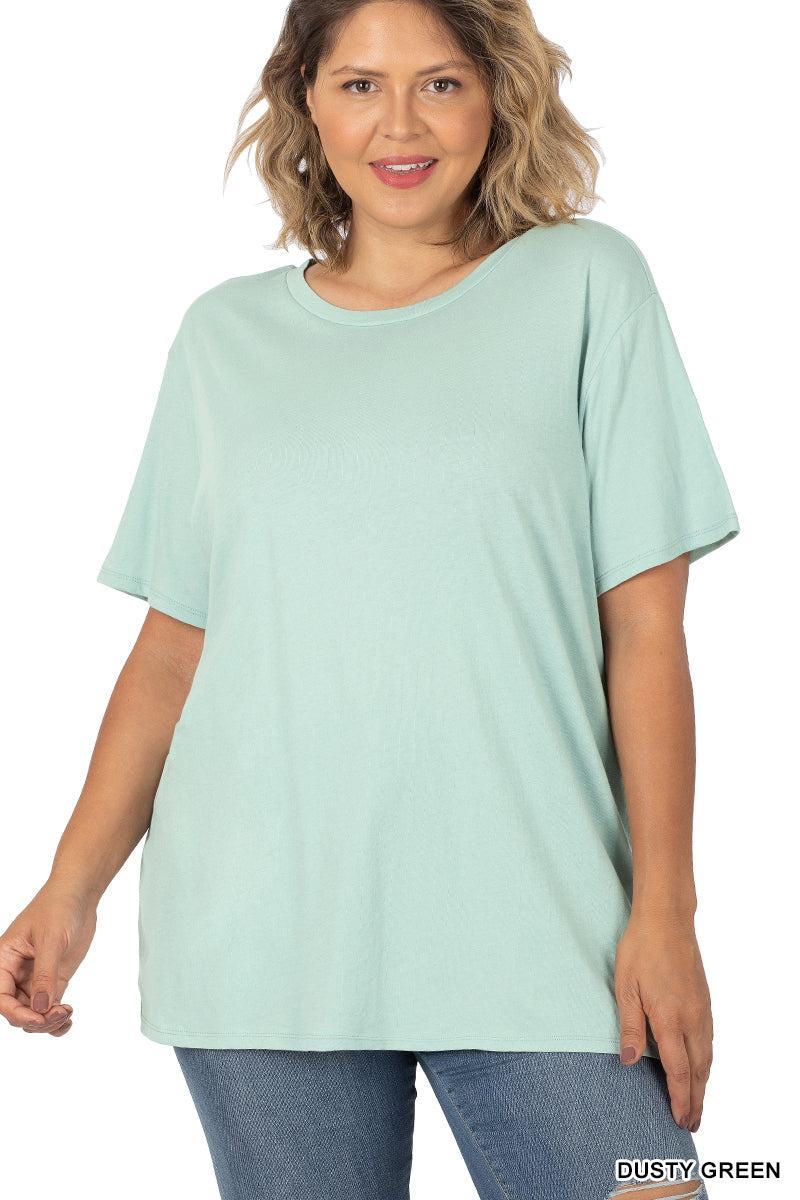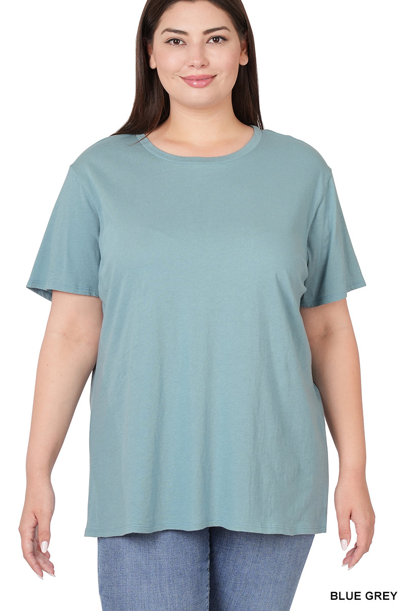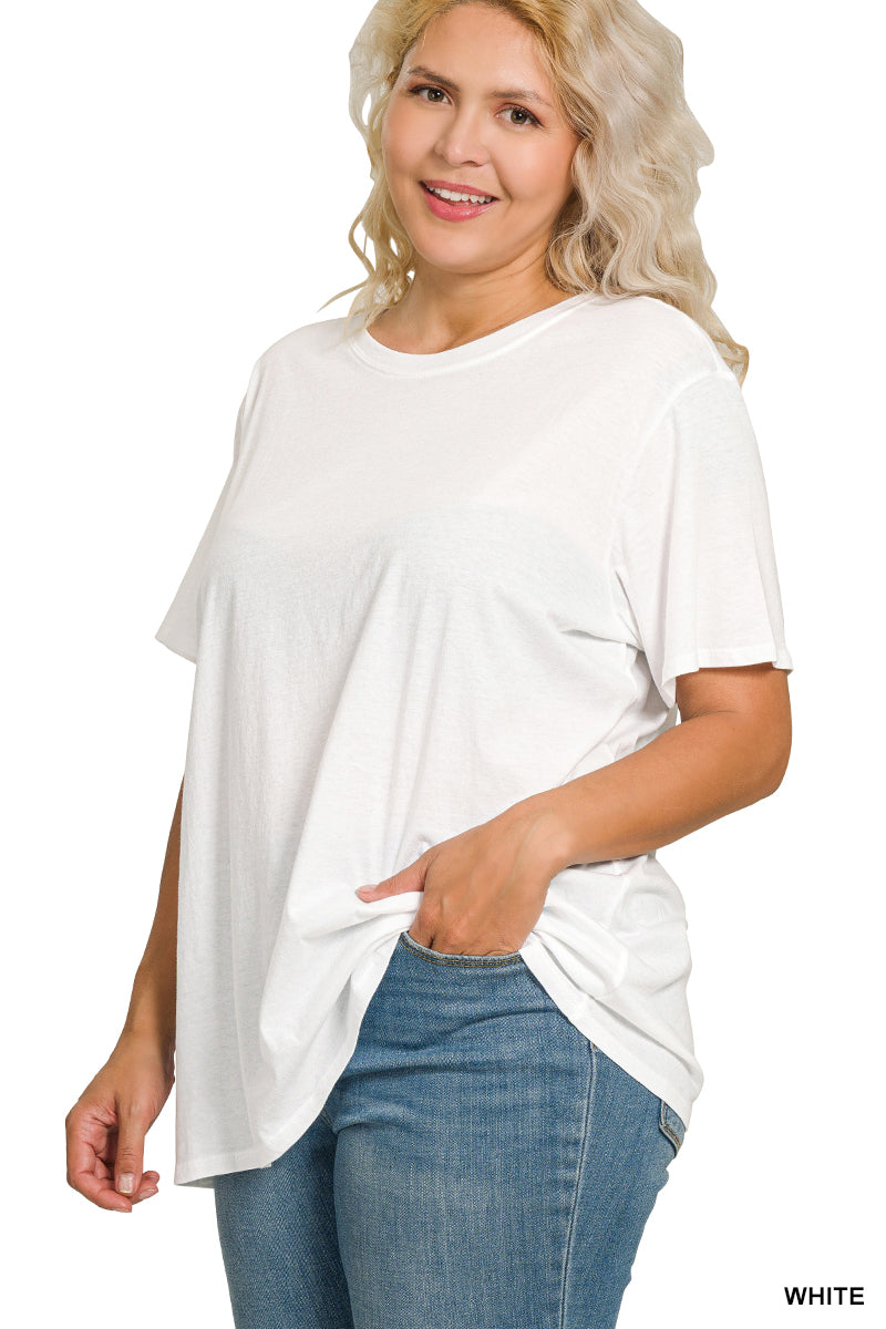 Zenana Plus Cotton Boyfriend Round Neck Tee