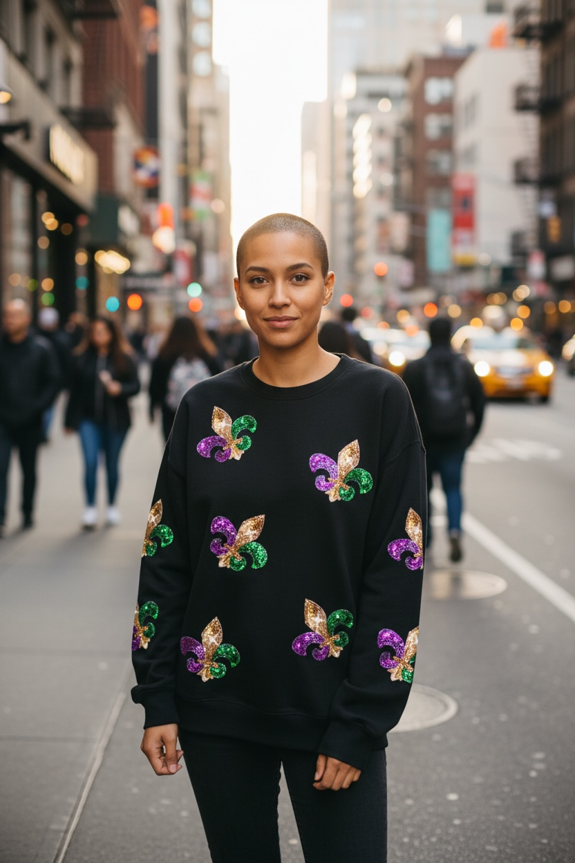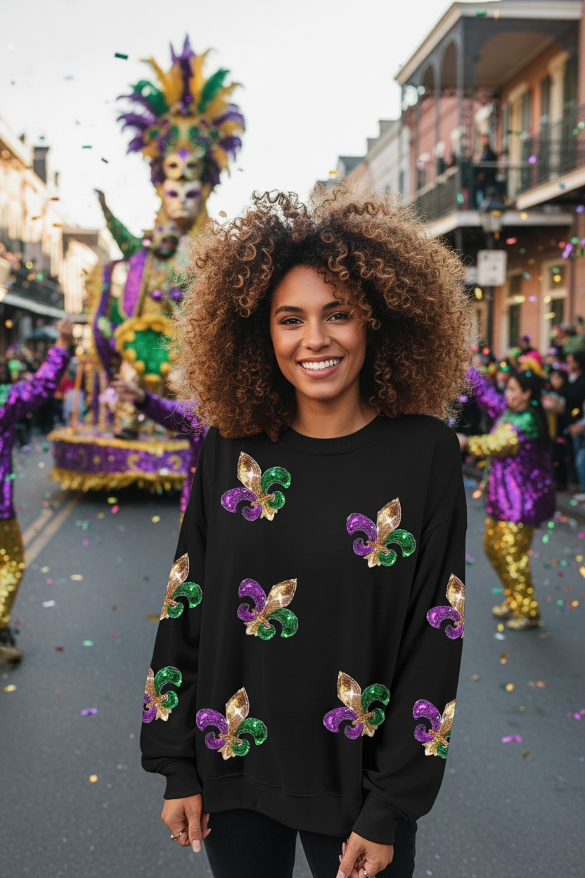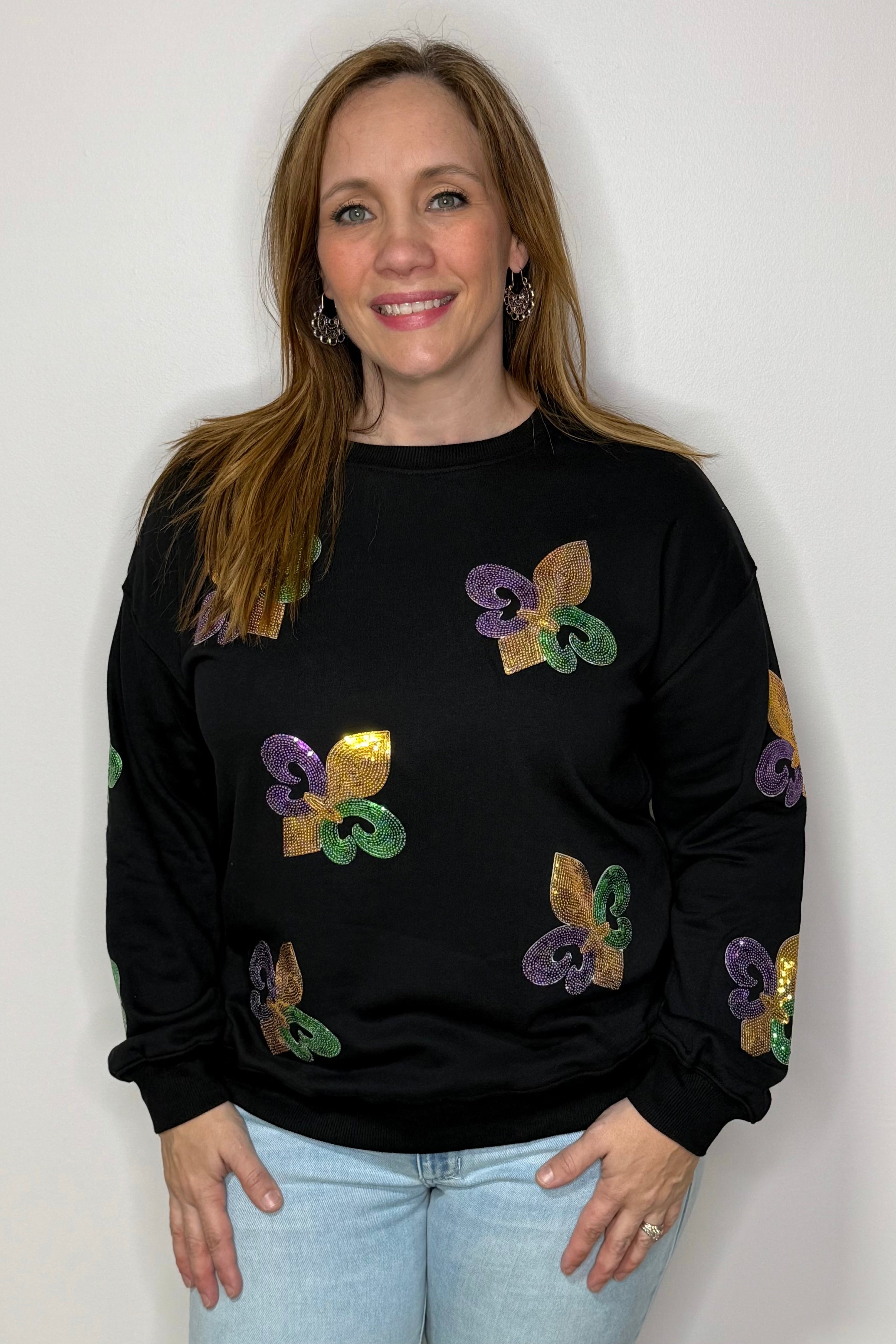 Sequin Mardi Gras Graphic Pullover Sweatshirt