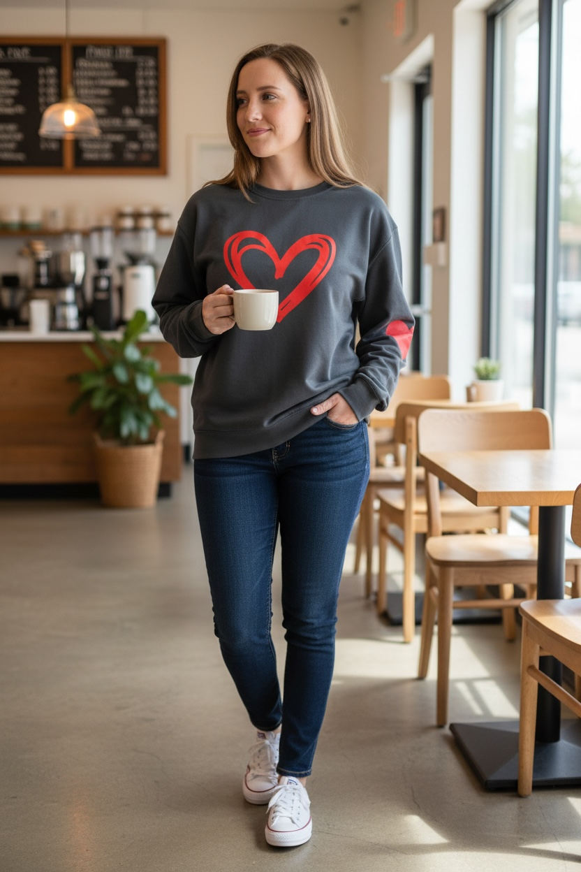 Heartfelt Everyday Love Sweatshirt – Charcoal with Red Heart