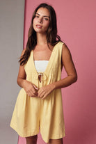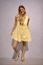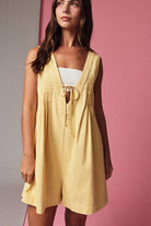 Sunshine style meets effortless comfort in The Lemon Drop Breeze Pleated Romper by Papermoon. Designed with a relaxed, easy silhouette, this sleeveless romper brings a light and playful feel to warm-weather dressing. The soft yellow hue adds a cheerful pop of color, while the deep V neckline with an adjustable tie detail creates a flattering, feminine touch.