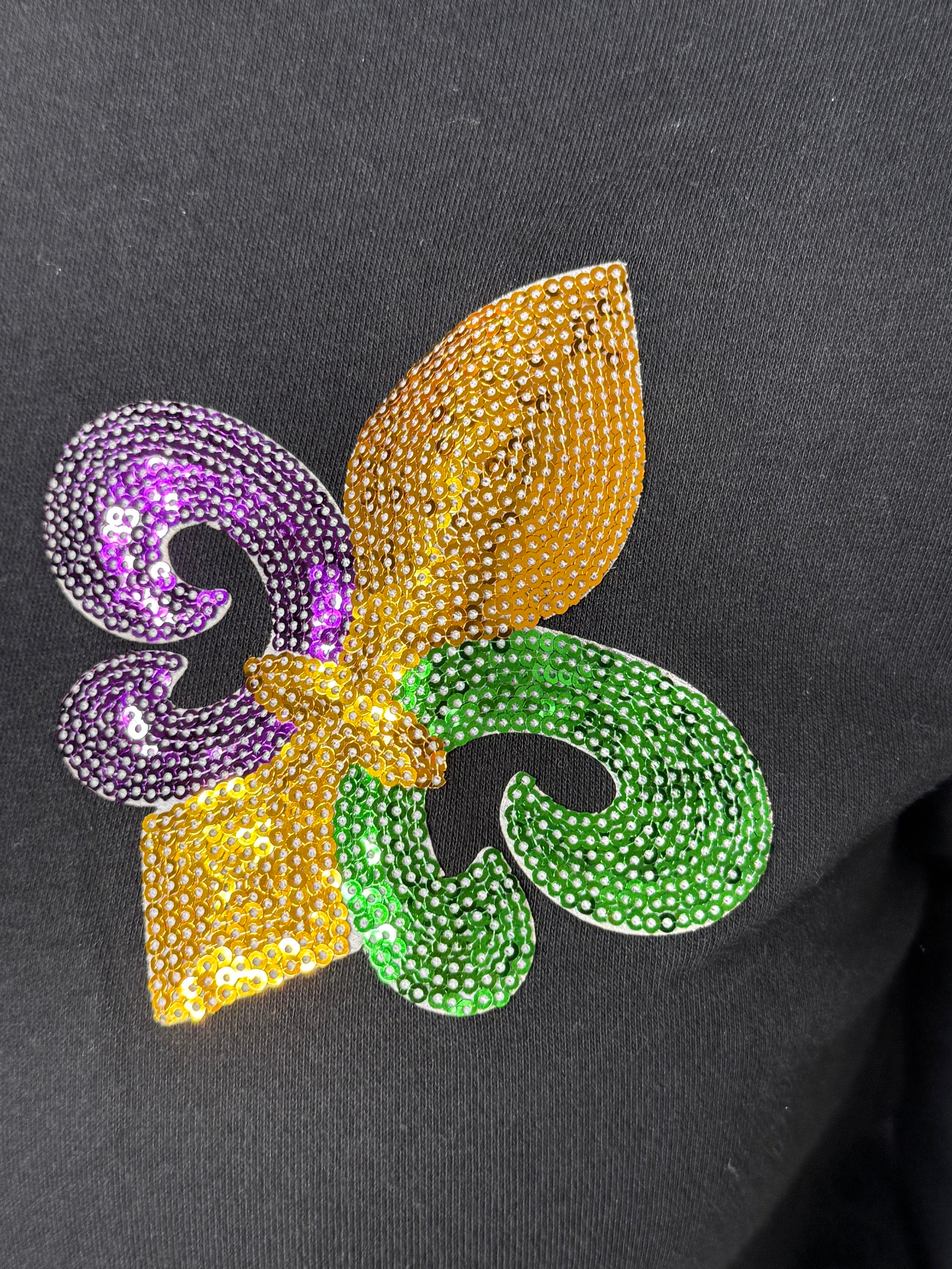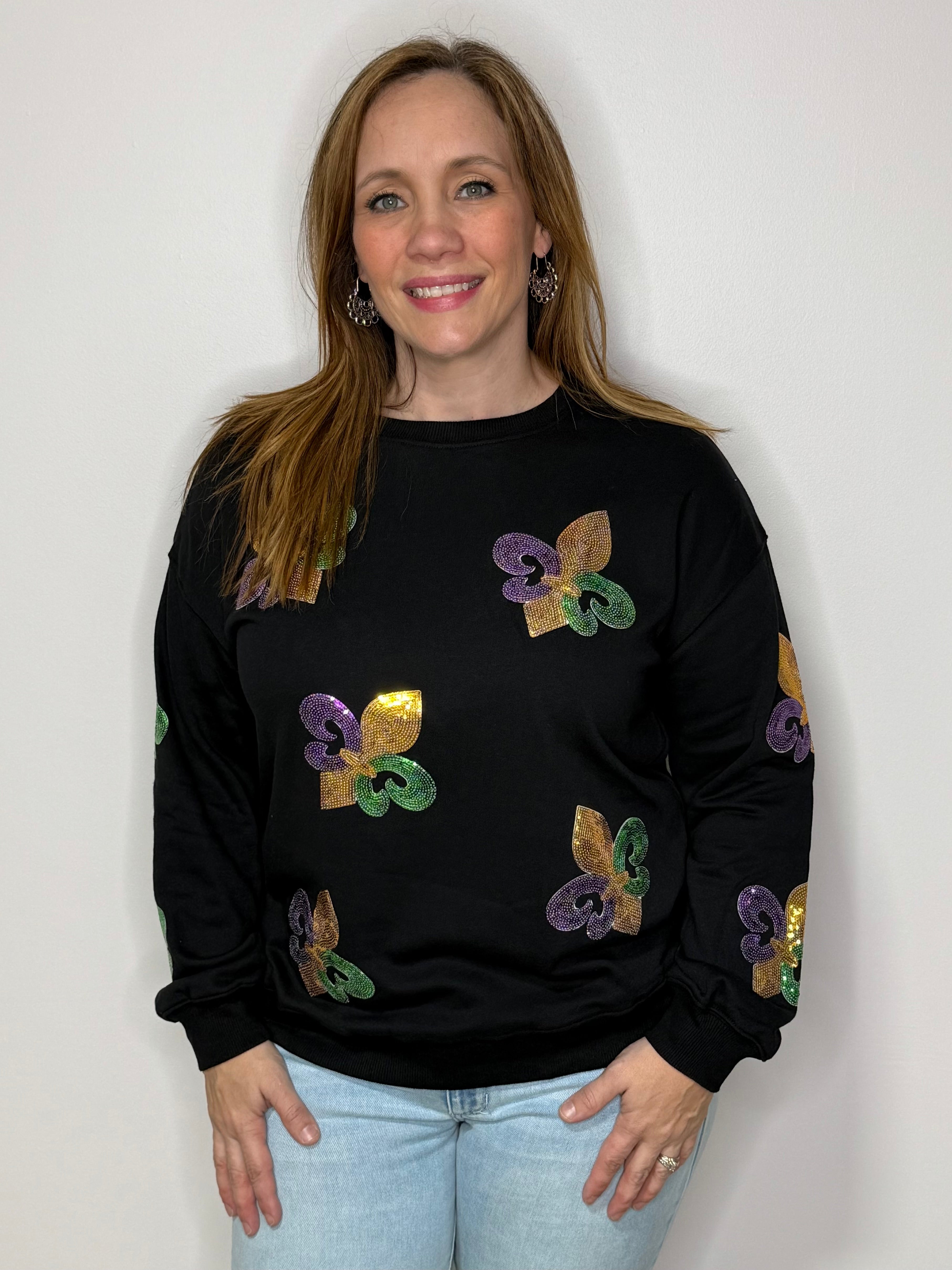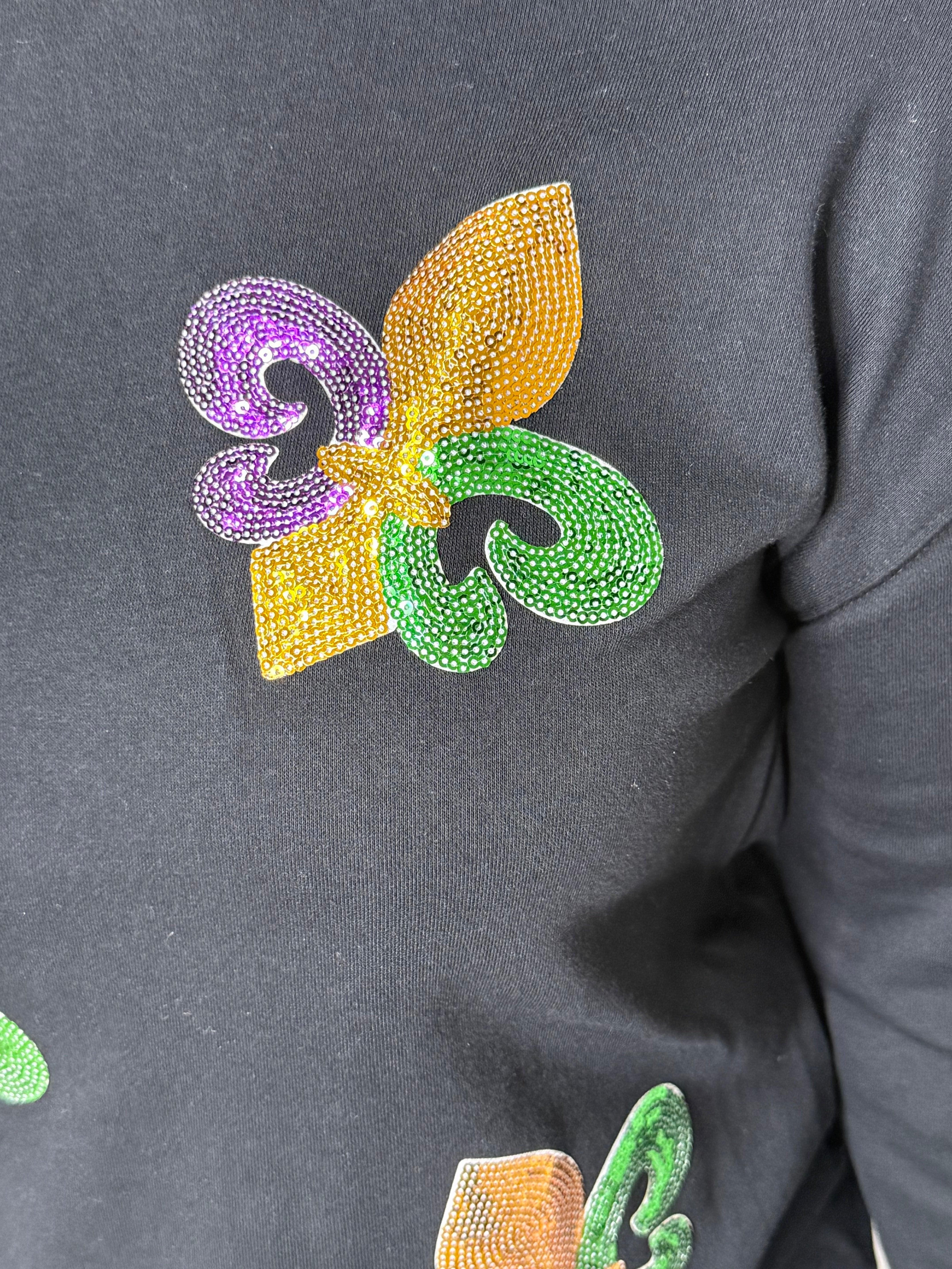 Sequin Mardi Gras Graphic Pullover Sweatshirt