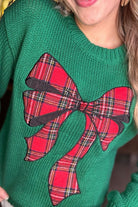 Bring a touch of festive charm to your wardrobe with our Evergreen Plaid Bow Holiday Sweater by Grateful Threads. Featuring a bold red plaid bow graphic on a rich evergreen knit, this sweater radiates Christmas cheer while keeping you cozy. The chunky knit design is perfect for cold-weather layering, while the drop-shoulder fit adds a relaxed, laid-back vibe. Made from a soft cotton-acrylic blend, it’s durable, warm, and designed to keep its shape wear after wear. Whether you’re heading to a holiday party, family gathering, or just spreading Christmas joy in your daily style, this sweater is your go-to festive favorite.