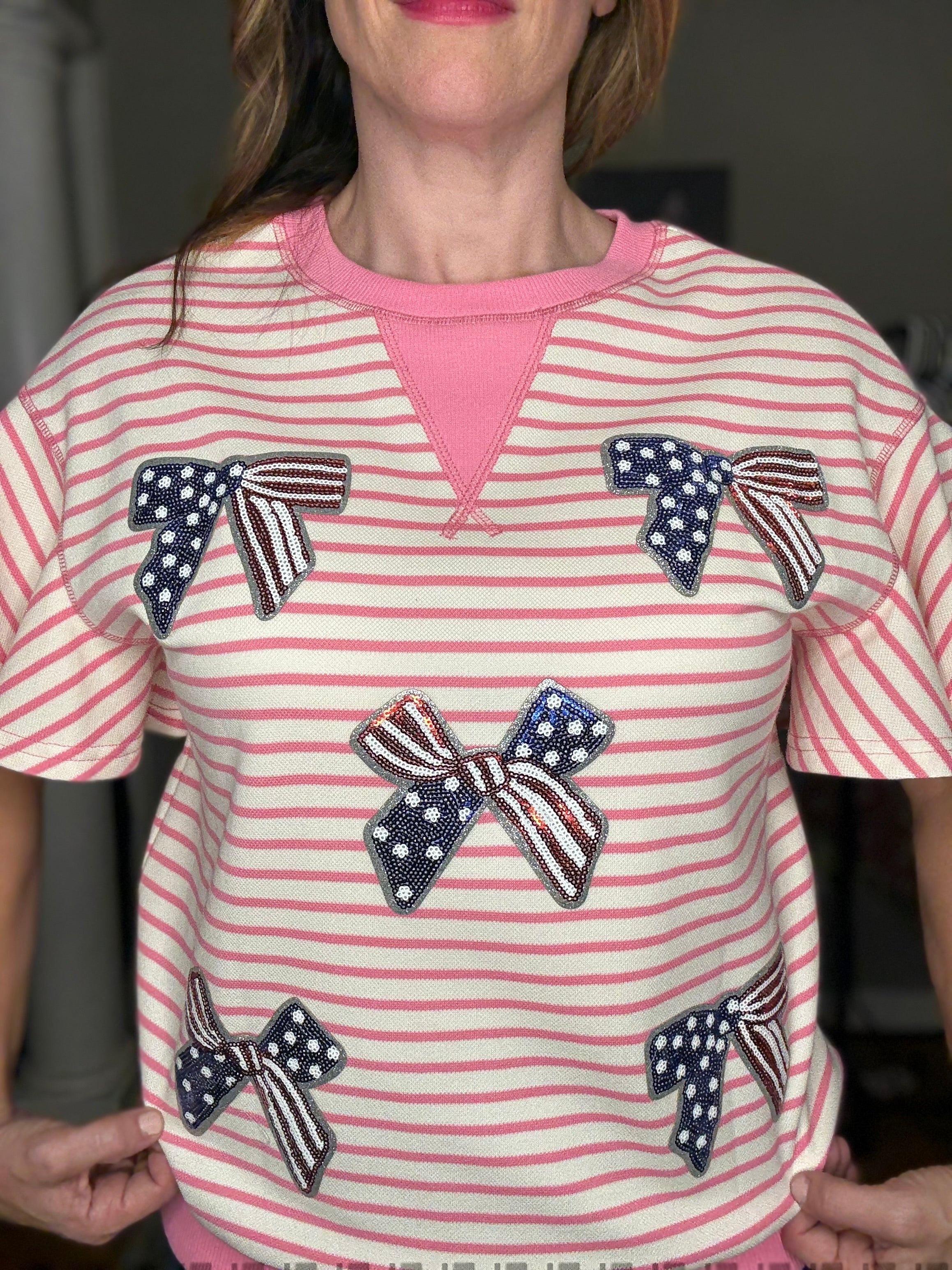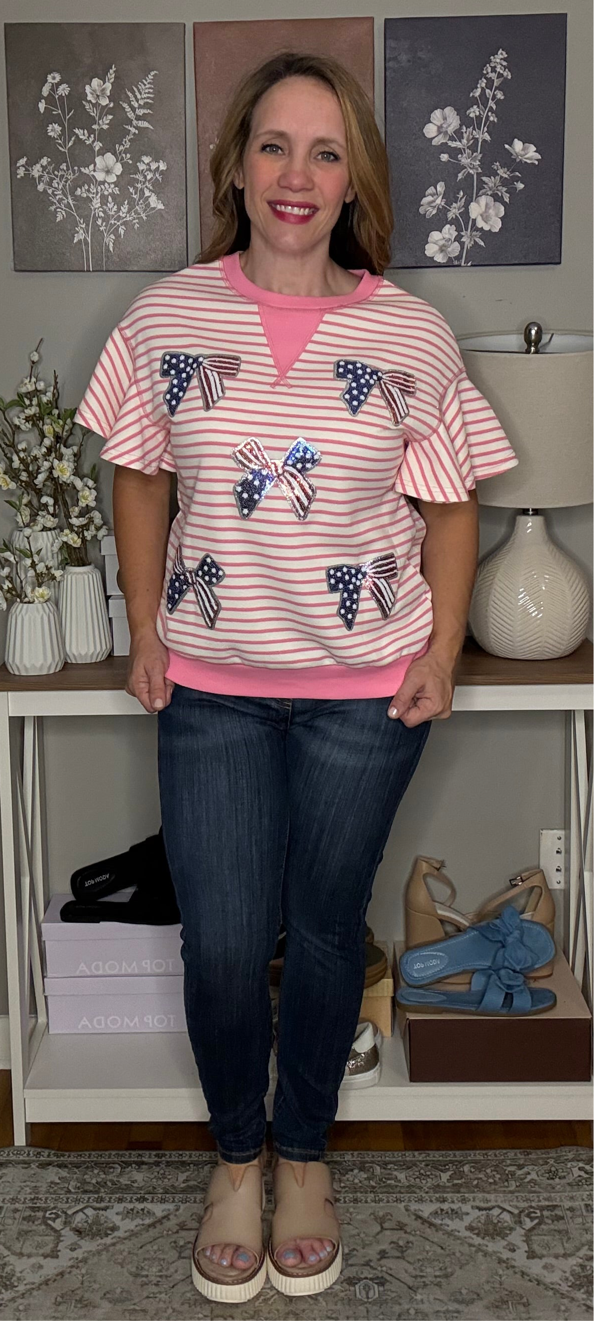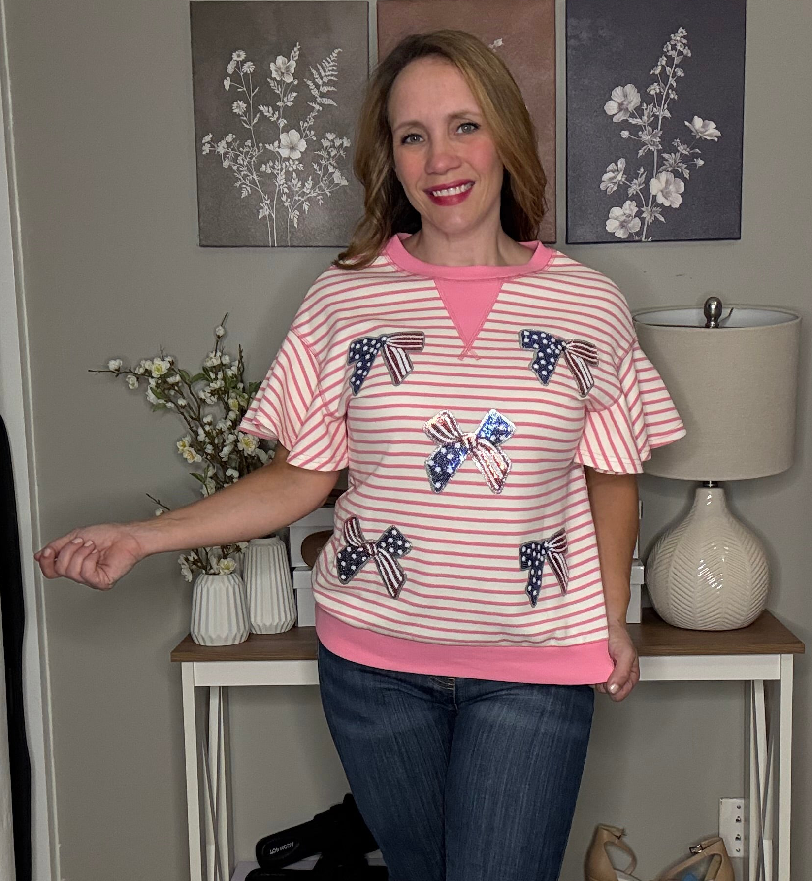 “Stars, Stripes & Sass” Sequin Bow Ruffle Tee