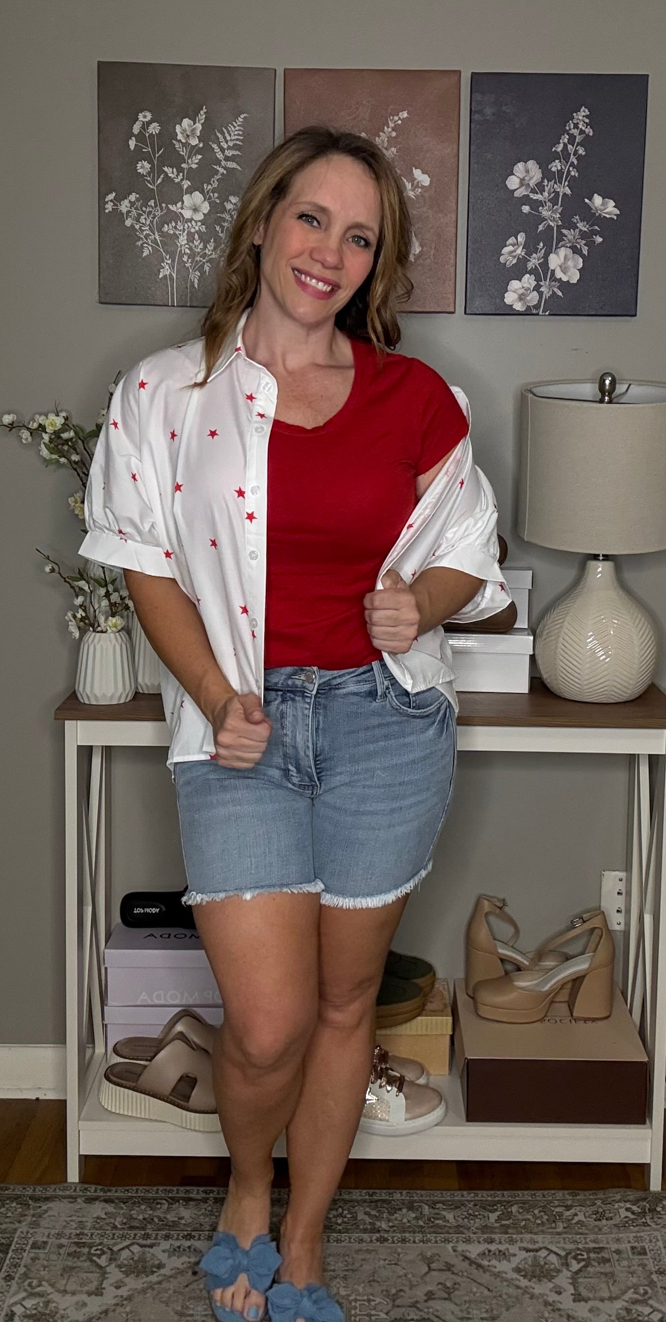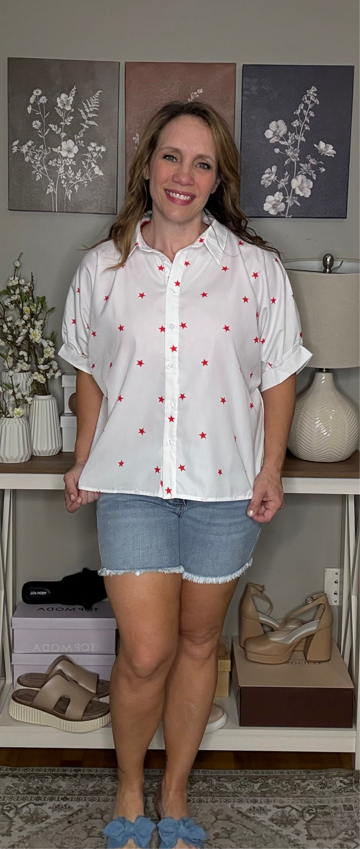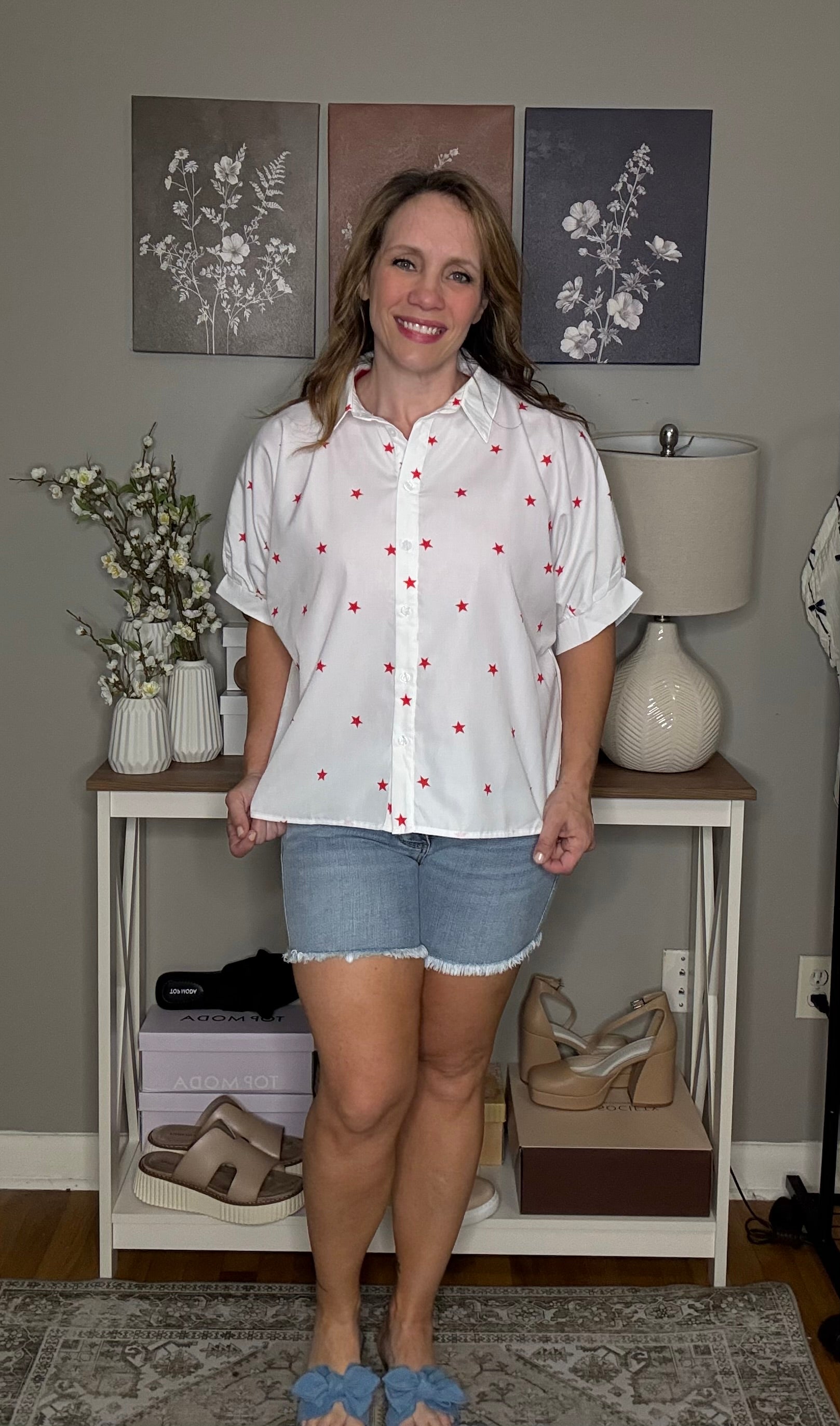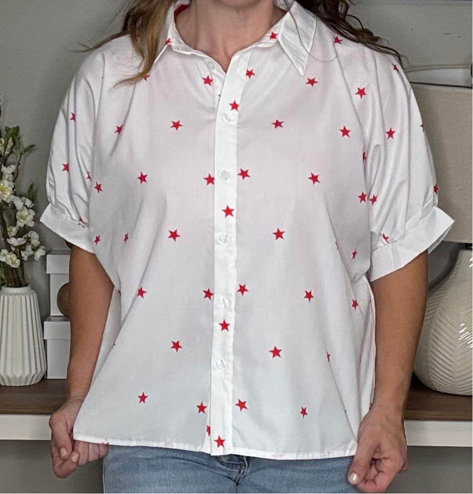 White Red Little Stars Printed Loose Half Sleeve Shirt