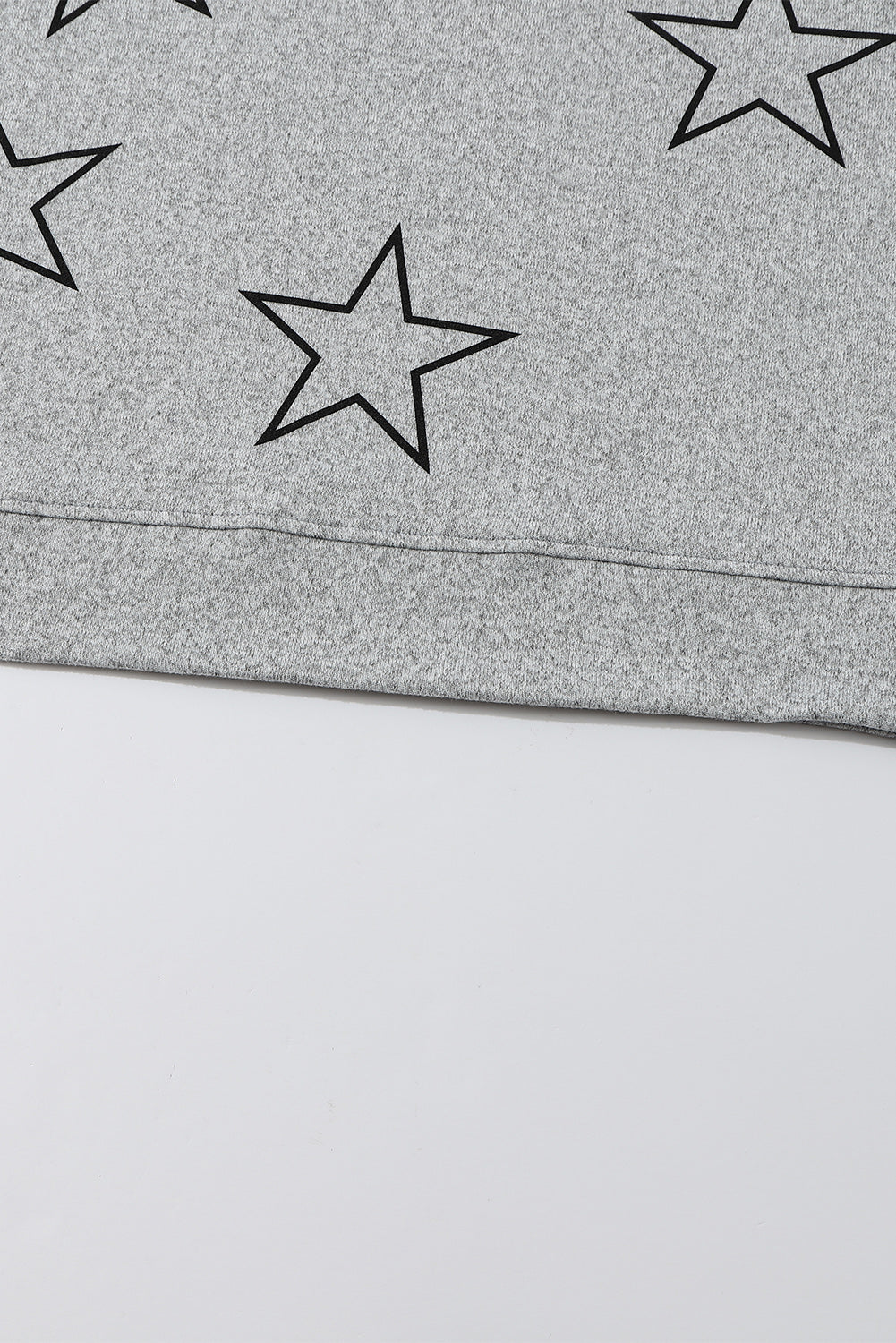 Gray Stars Print Long Sleeve Drawstring High Waist Lounge Set