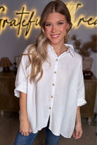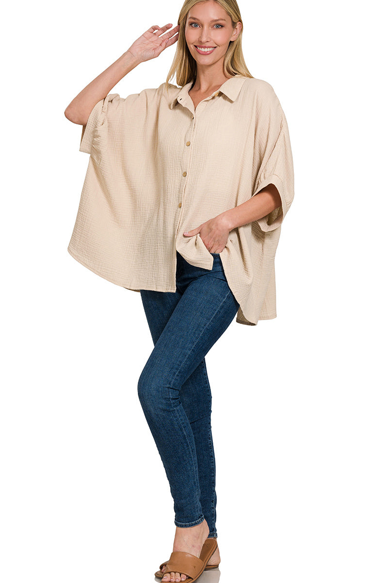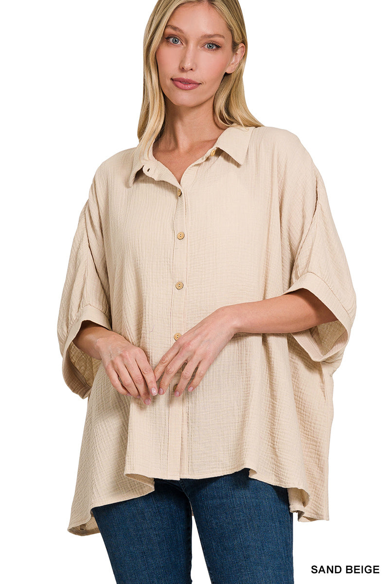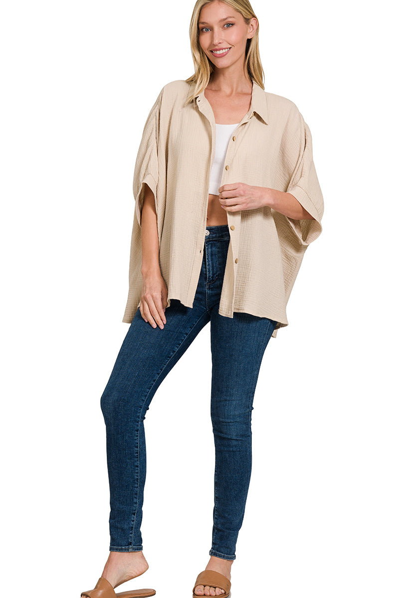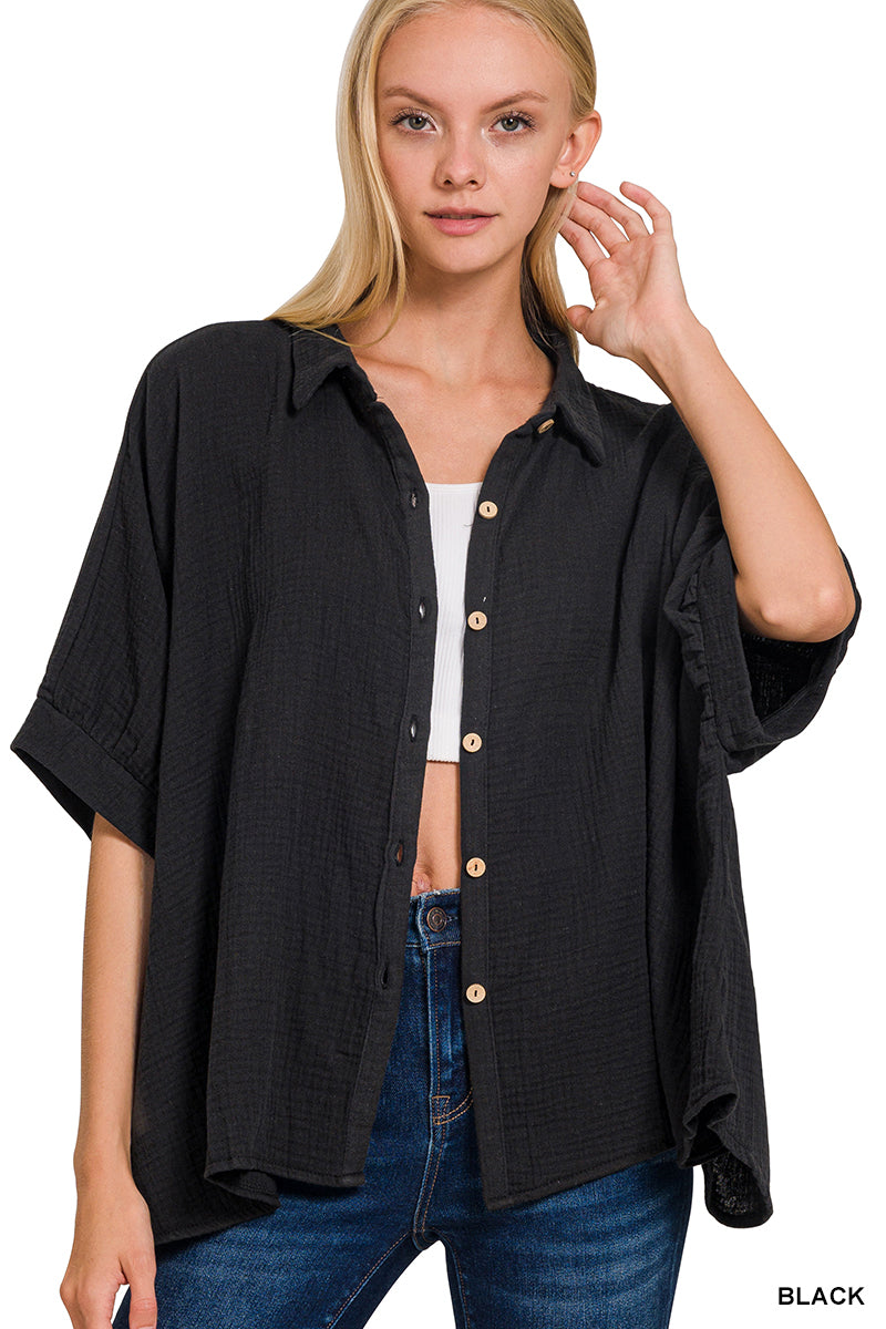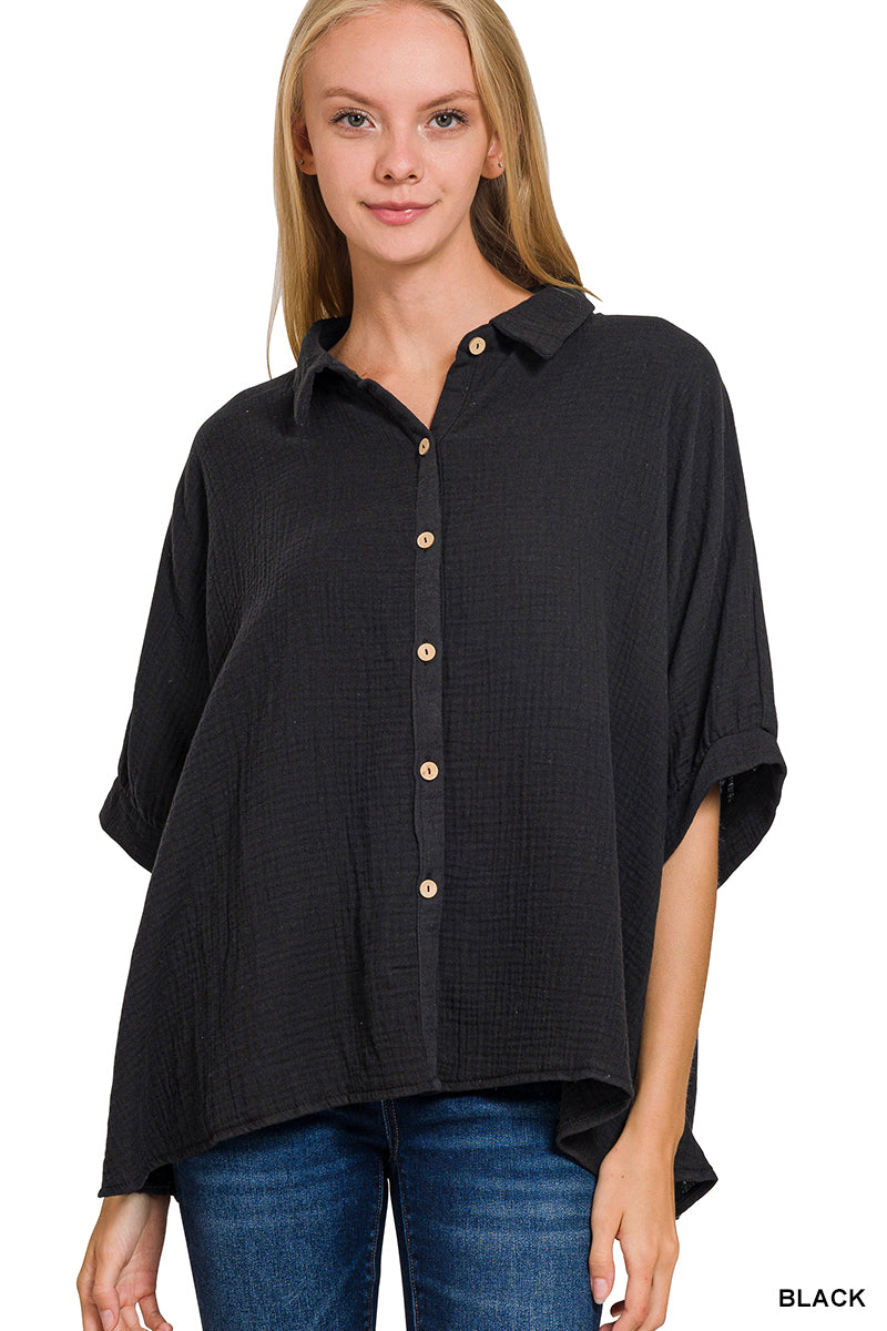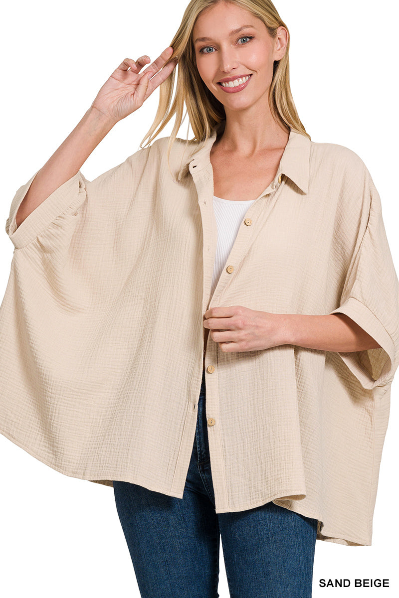 Double Gauze 3/4 Sleeve Button Up Shirt