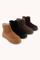 Fully lined with plush shearling-style faux fur, these ankle-height platform boots are designed to keep your feet warm and cushioned without feeling bulky. The easy slip-on silhouette makes getting dressed a breeze, while the adjustable strap and signature metal hardware at the heel add that subtle, elevated touch that pairs perfectly with denim, leggings, or your favorite relaxed winter knits.