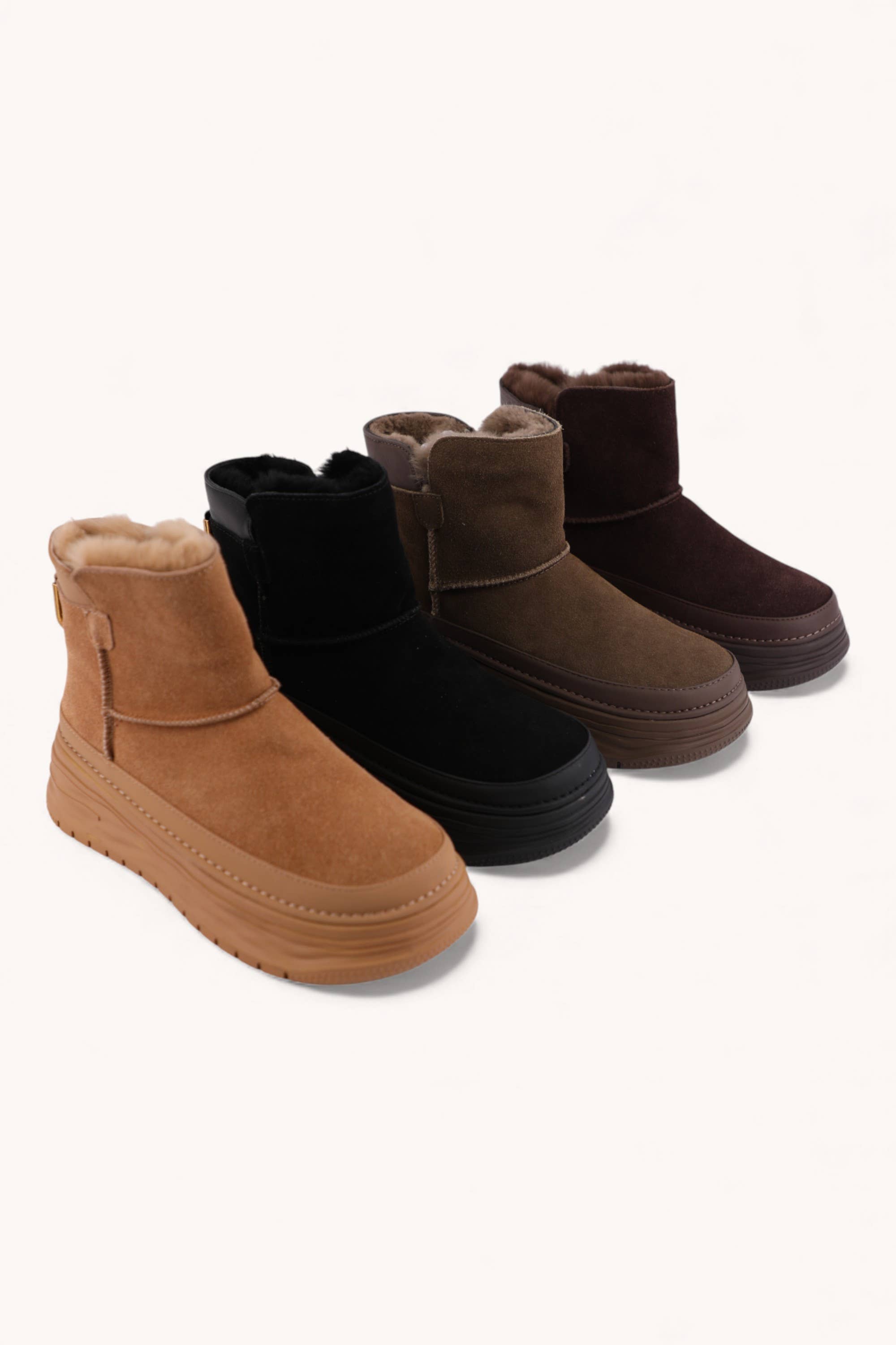 Finished with a supportive platform sole for all-day wear, these genuine leather winter boots bring together warmth, comfort, and everyday style in one effortless step.