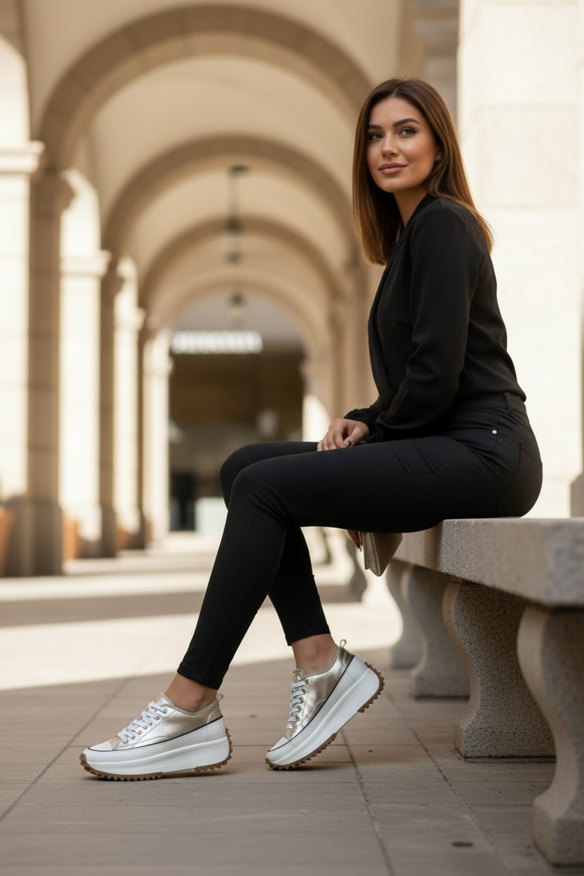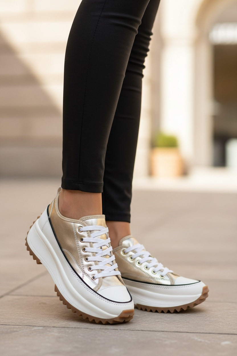 Maker's Shoes - CHUNKY LACE UP SNEAKERS : Champagne