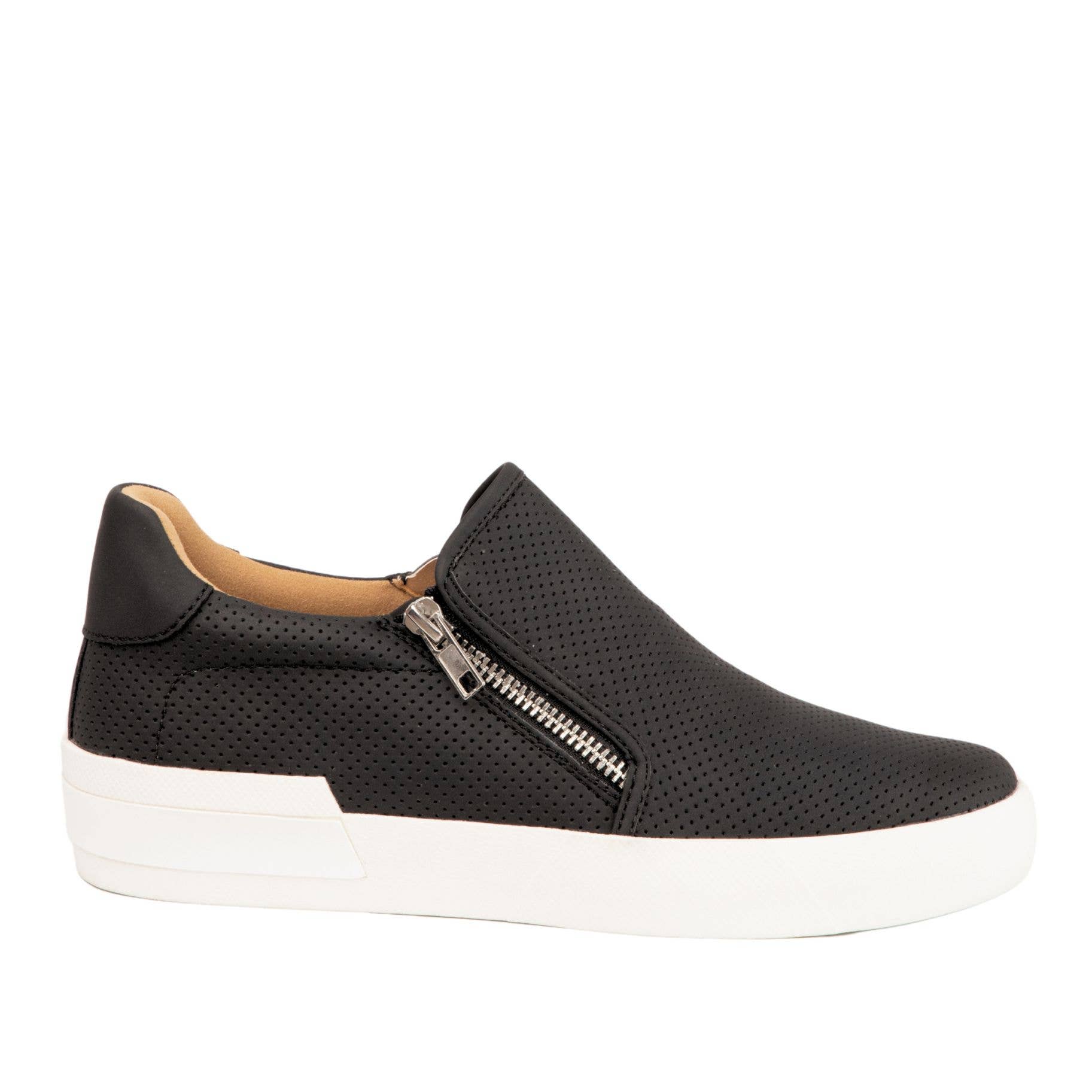 Maker's Shoes - Zion 2 Perforated Comfort Slip-On Sneaker with Double Zipper: Black