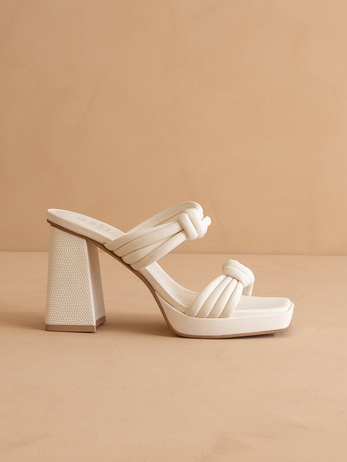 The perfect pairing for any party, this knot platform sandal brings a little edge with a chunky snake-print heel. Materials: Upper Material: Vegan Leather Upper Insole Material: Padded Insole Sole or Heel Material: Synthetic Wrap Heel Details: Brand: Oasis Society Heel Height: 4.25" The Front Platform: 1" Types of Closures: Slip On Pack name: S