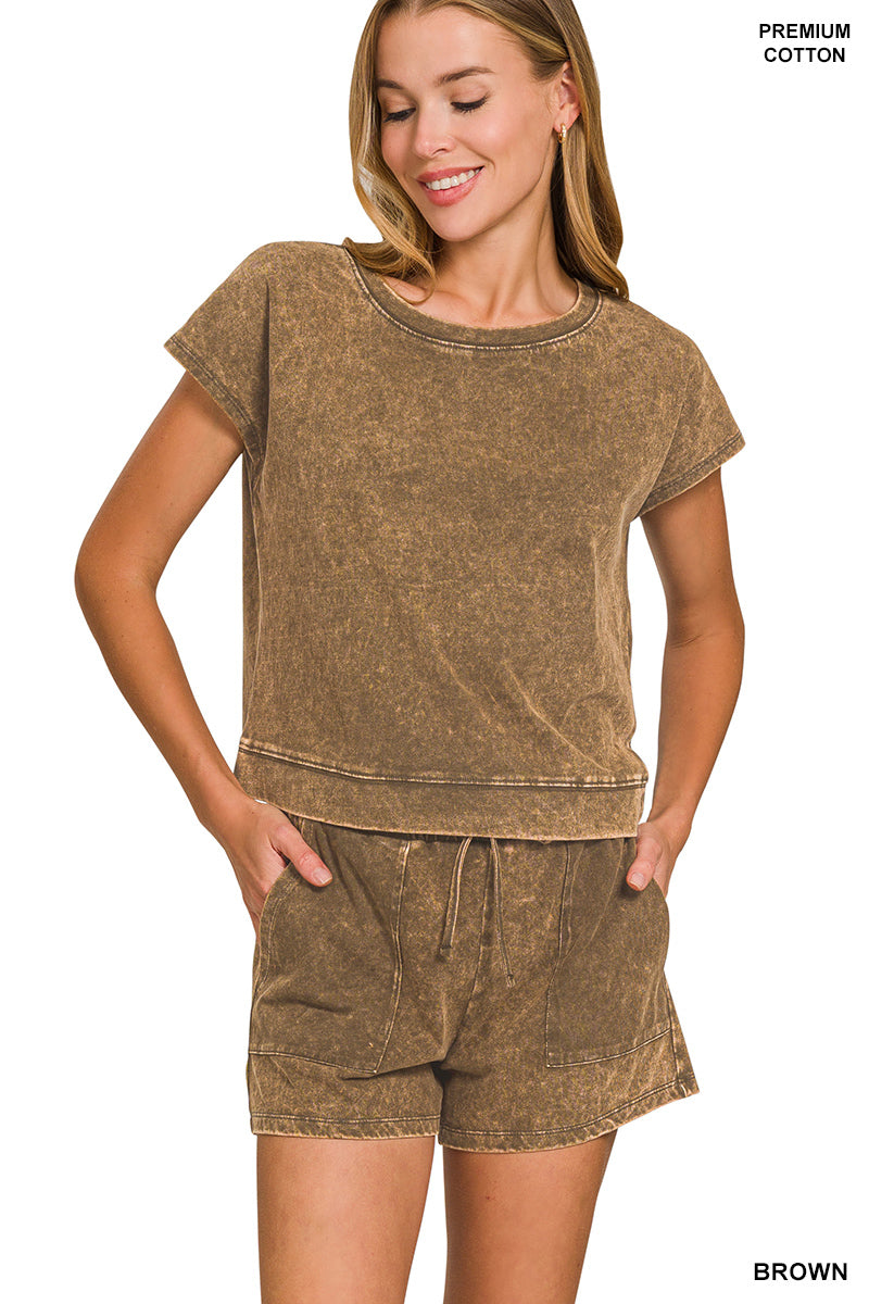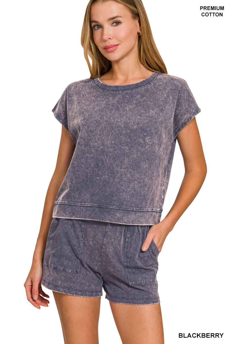 Zenana Fleece Long Sleeve Sweatshirts & Shorts Set