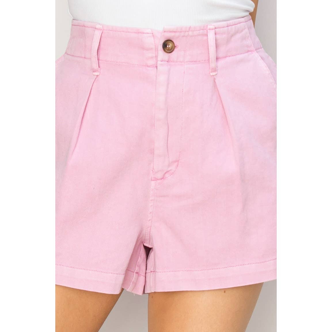Judy Blue High Waisted Tummy Control Garment Dyed Heart Shaped Pocket Scarlet Trouser Shorts