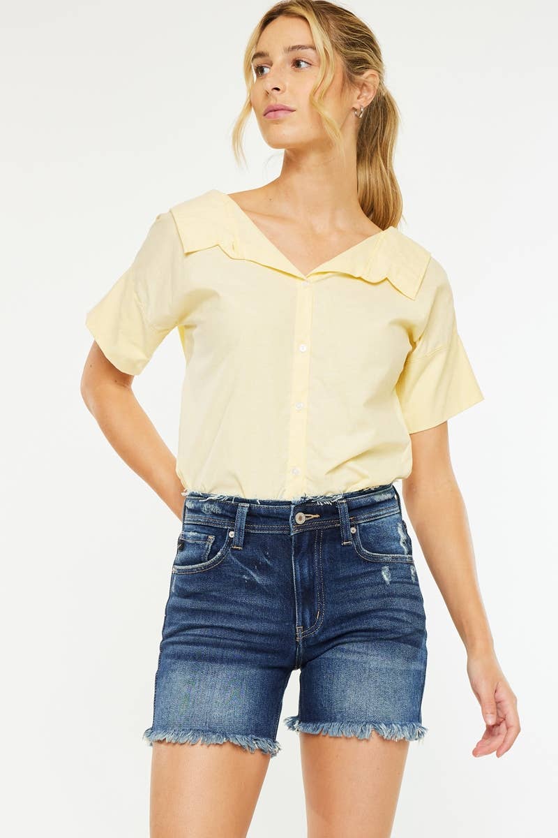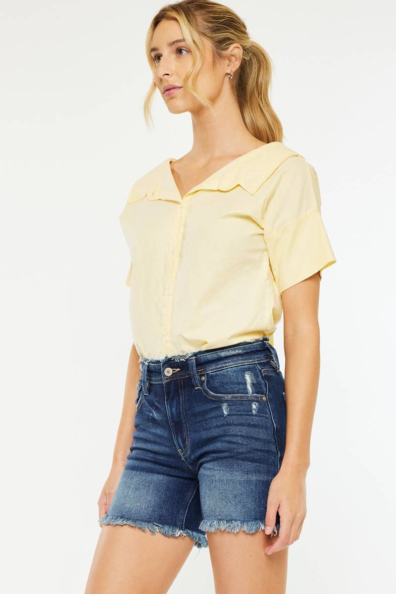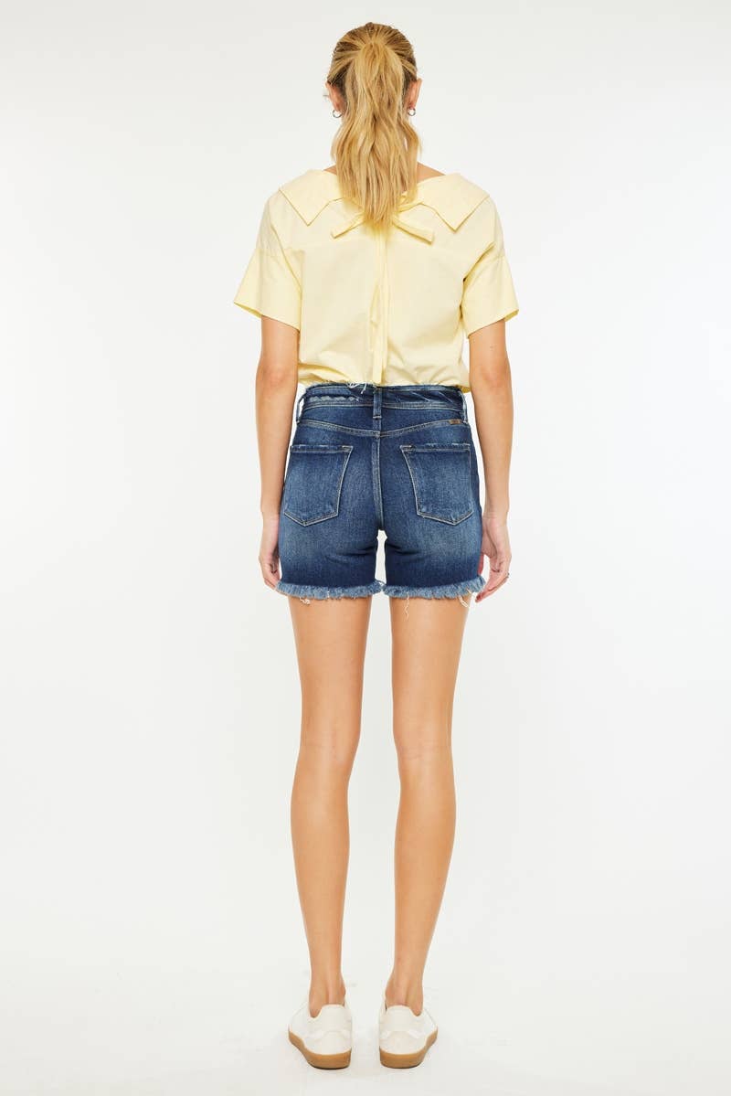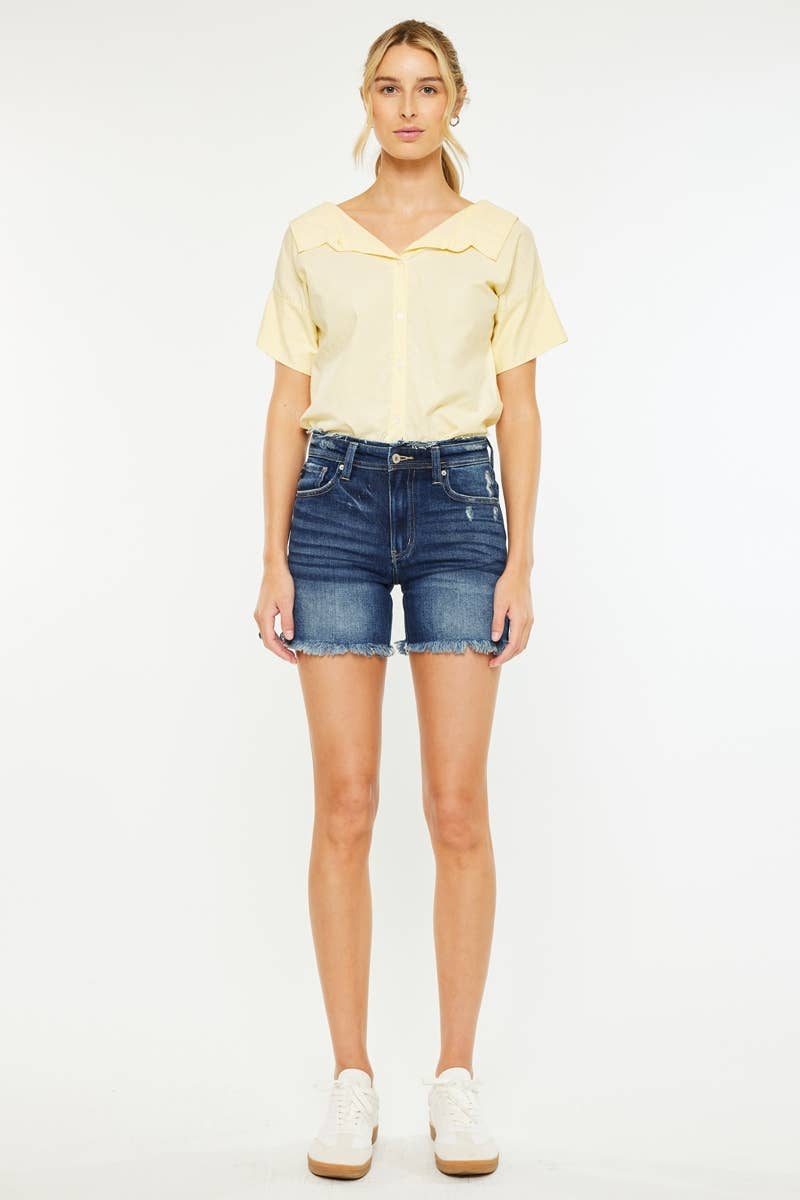 KanCan HIGH RISE SHORTS WITH WAISTBAND FRAY DETAIL