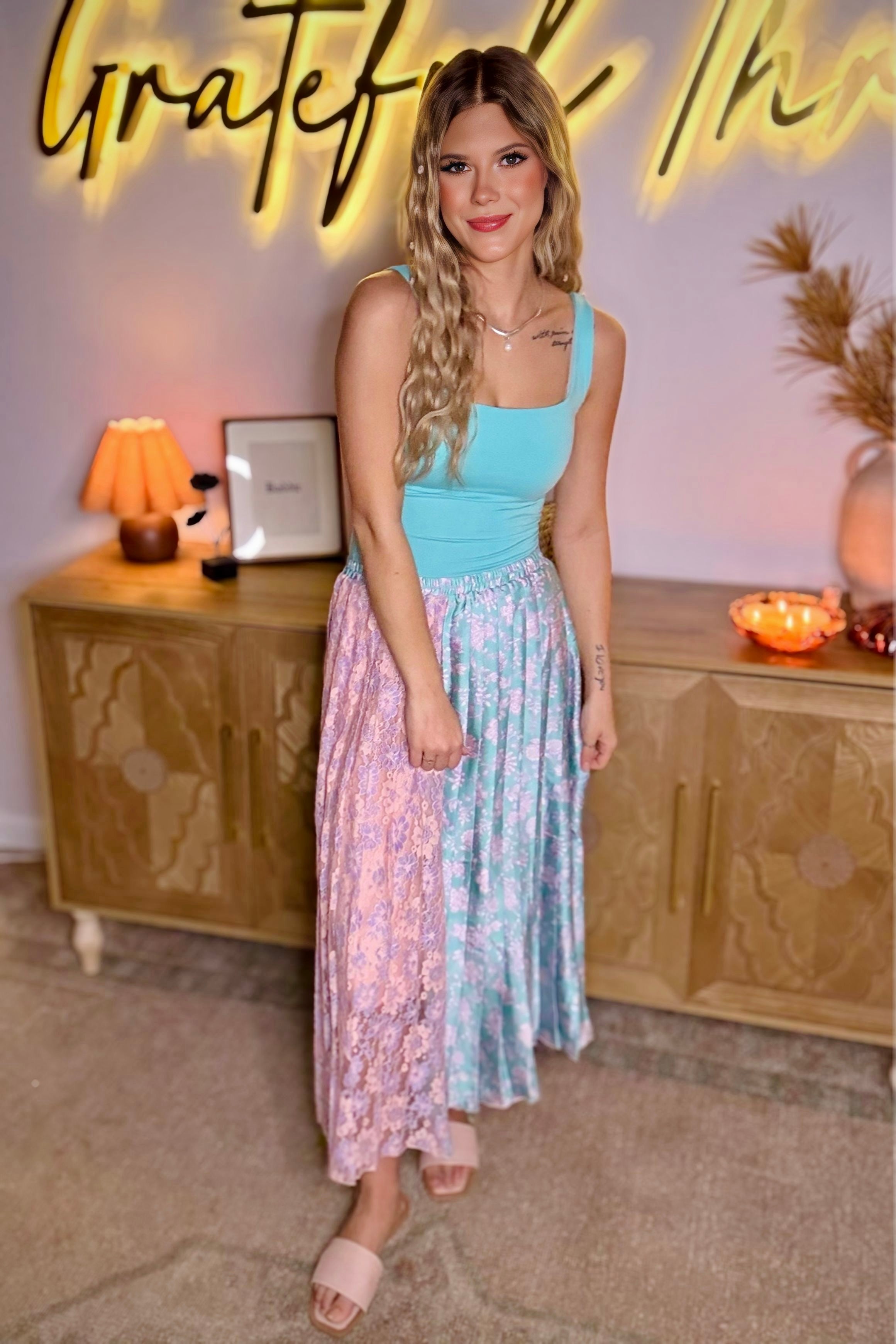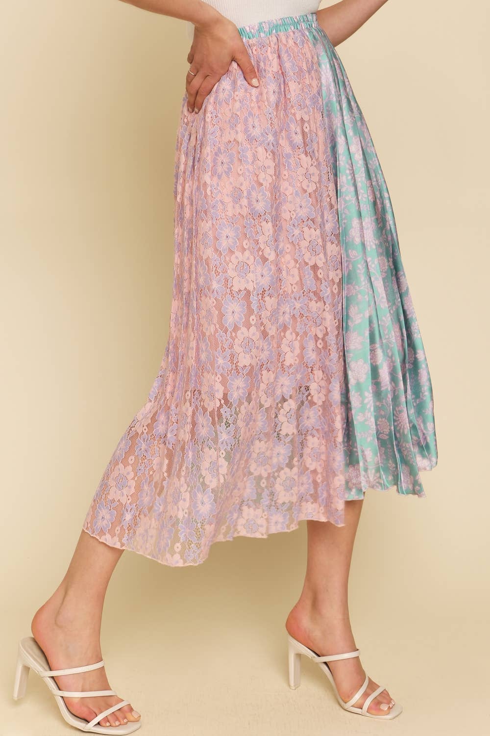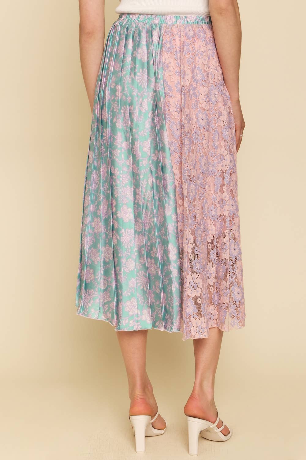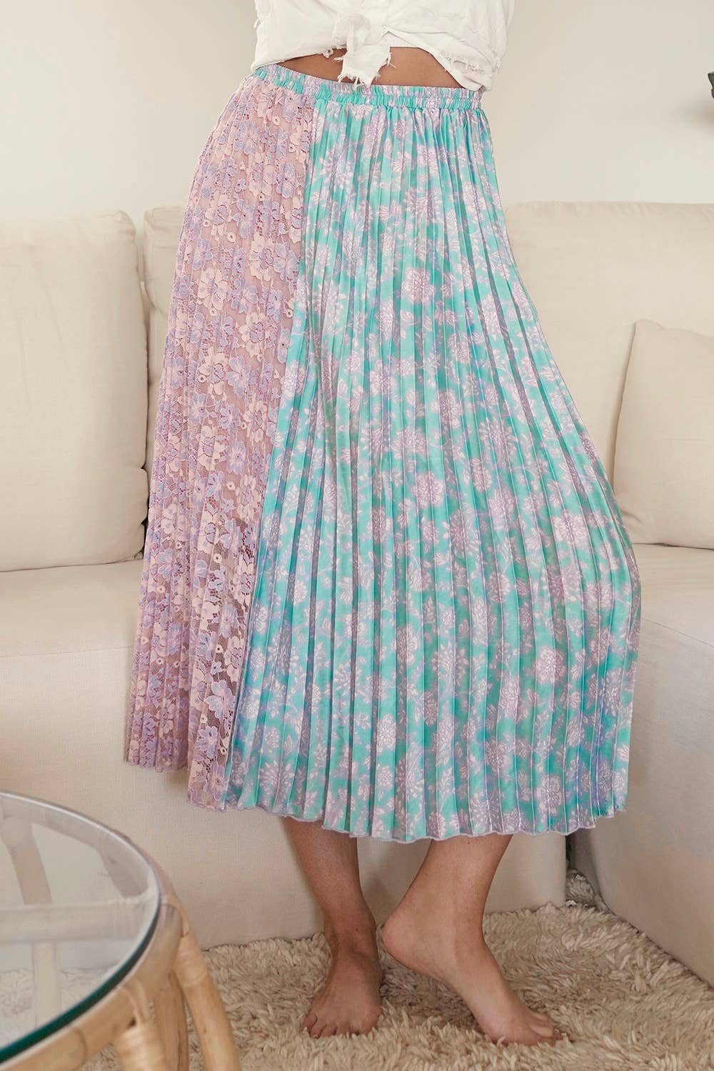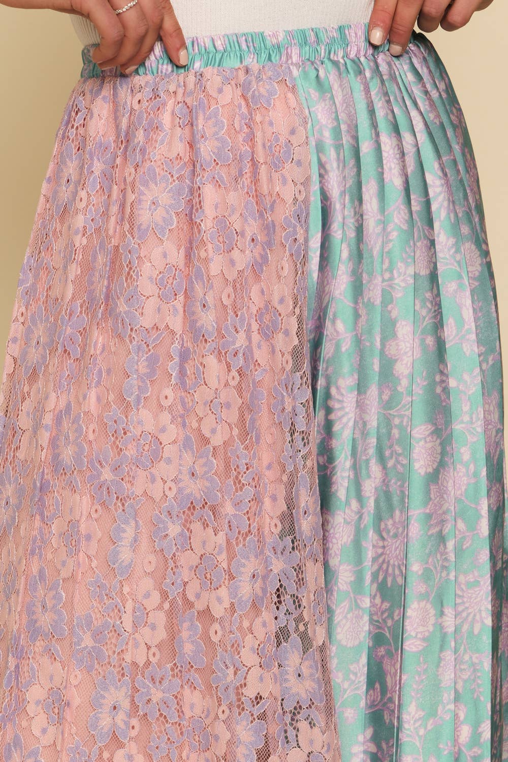 Mystree Mixed Media Midi Skirt: Teal/Lavender
